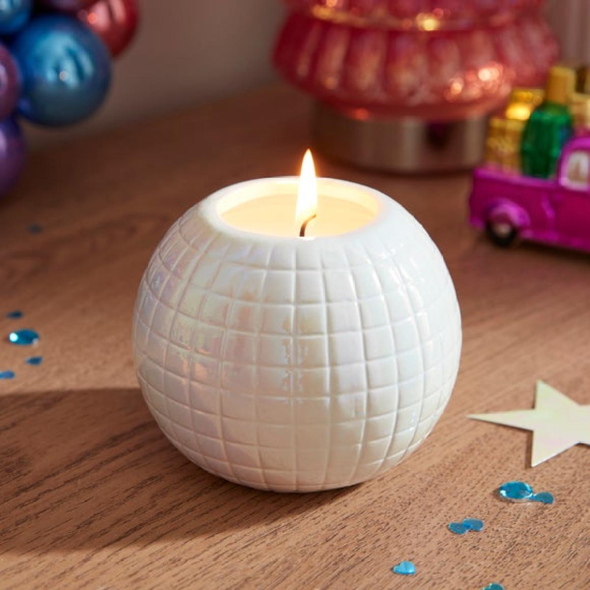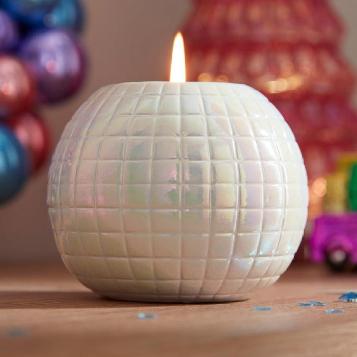* Retro glam style * Iridescent finish * Pink sugar scent * Great gift idea Add a retro glam touch to your space with the Iridescent Disco Ball Pink Sugar Candle. Housed in a ceramic holder with a shimmering iridescent finish, it’s a stylish nod to vintage party vibes. The sweet pink sugar scent fills your room with warmth, perfect for cosy nights in or as a standout gift. A fun blend of fragrance and flair - eye-catching, fragrant, and full of personality.