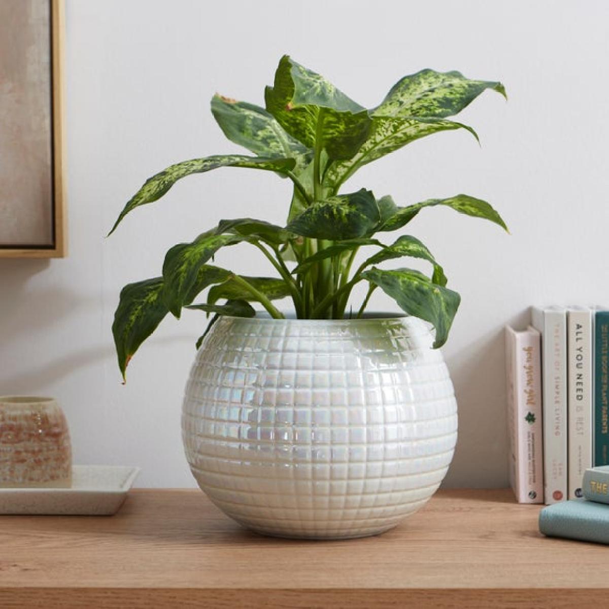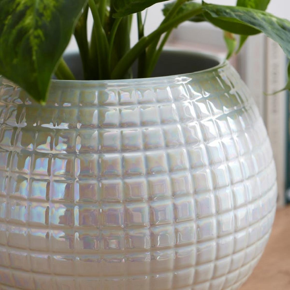 * Iridescent finish * Disco ball design * Embossed 3D pattern * Durable stoneware * Indoor use only Add a splash of sparkle to your space with this iridescent disco ball plant pot. Its shimmering finish catches the light beautifully, while the embossed 3D pattern brings texture and depth. The classic disco ball design adds a playful retro vibe that’s perfect for brightening up shelves, desks or windowsills. Made from durable stoneware, it’s built to last and ideal for indoor use. Whether you're housing succulents or trailing vines, this pot makes a statement - just pop in your favourite plant and let the good vibes grow.