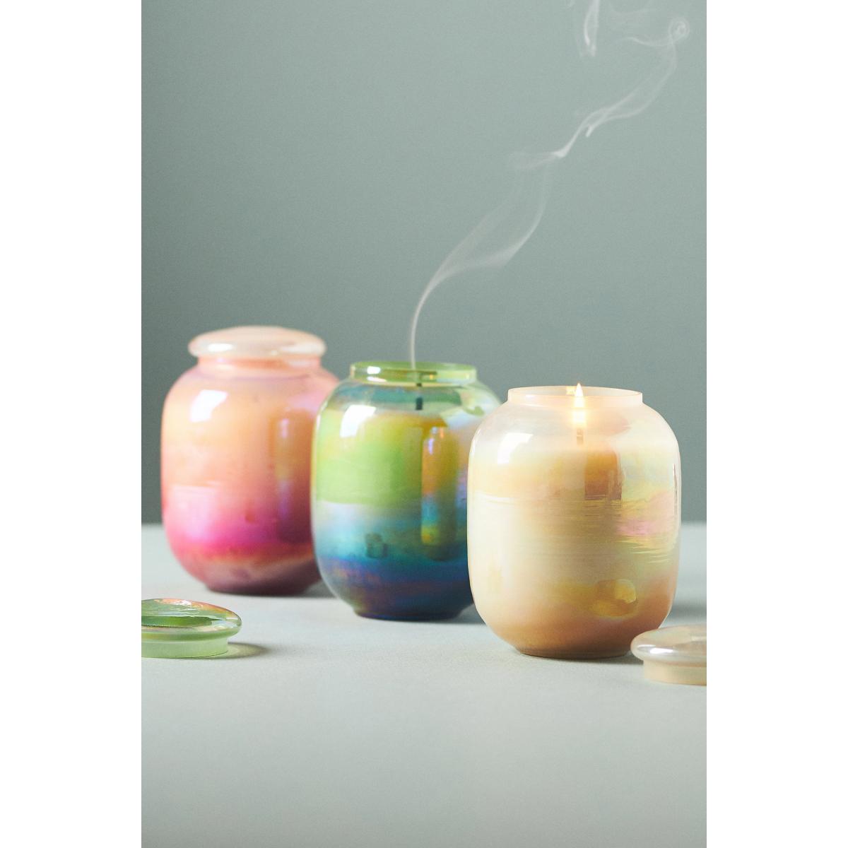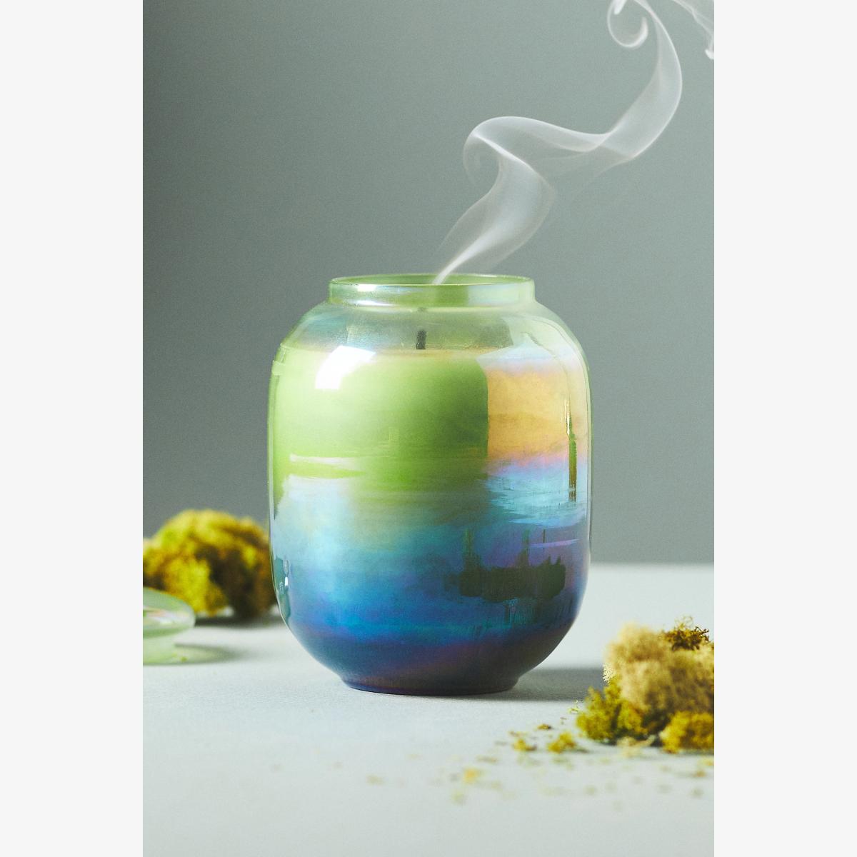 A soft, cylindrical silhouette that glows with iridescent, tonal hues, this candle is as much a work of art as it is a source of light. **Fern Moss (Fresh Herbal)**: A botanical fusion of dense woodland foliage, leafy elm, and white birch lifted by sun-dappled citrus over fresh moss, dewy fern, and herbaceous lavender. *For the best burn experience, keep the following in mind:* * The first time you light your candle, allow it to burn until the wax pool melts all the way to the edge; for a larger candle, this may take several hours. Wax has "memory," so if it is extinguished with a partial pool, that will prevent a full, even pool from forming in the future. * Trim your wick each time you light the candle, removing any "bloom" from the previous burn. We recommend lighting a wick that is 1/4-1/2" in length. * Ensure that your candle is placed on a heat-safe surface. * Do not allow wick trimmings, dust, or other materials to accumulate in the wax pool. * To ensure safety and longevity, be sure to check the bottom of your candle for additional instructions, including details on when to discontinue use. * 63-hour burn time * Hand-poured plant-based wax blend; fil-tec candle wick * Glass vessel with lid * Imported