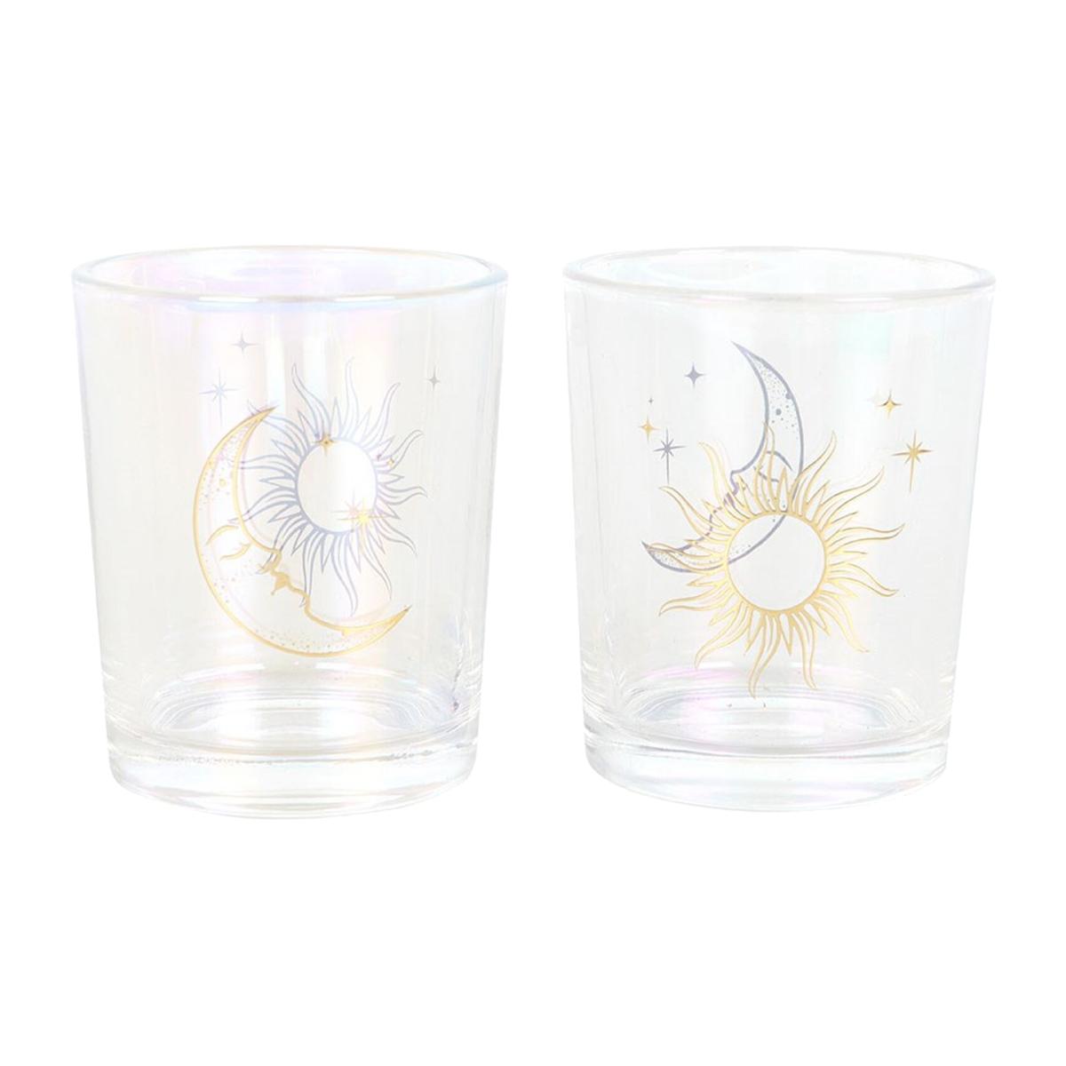 Iridescent Sun and Moon Votive Candle Holders - Clear Iridescent