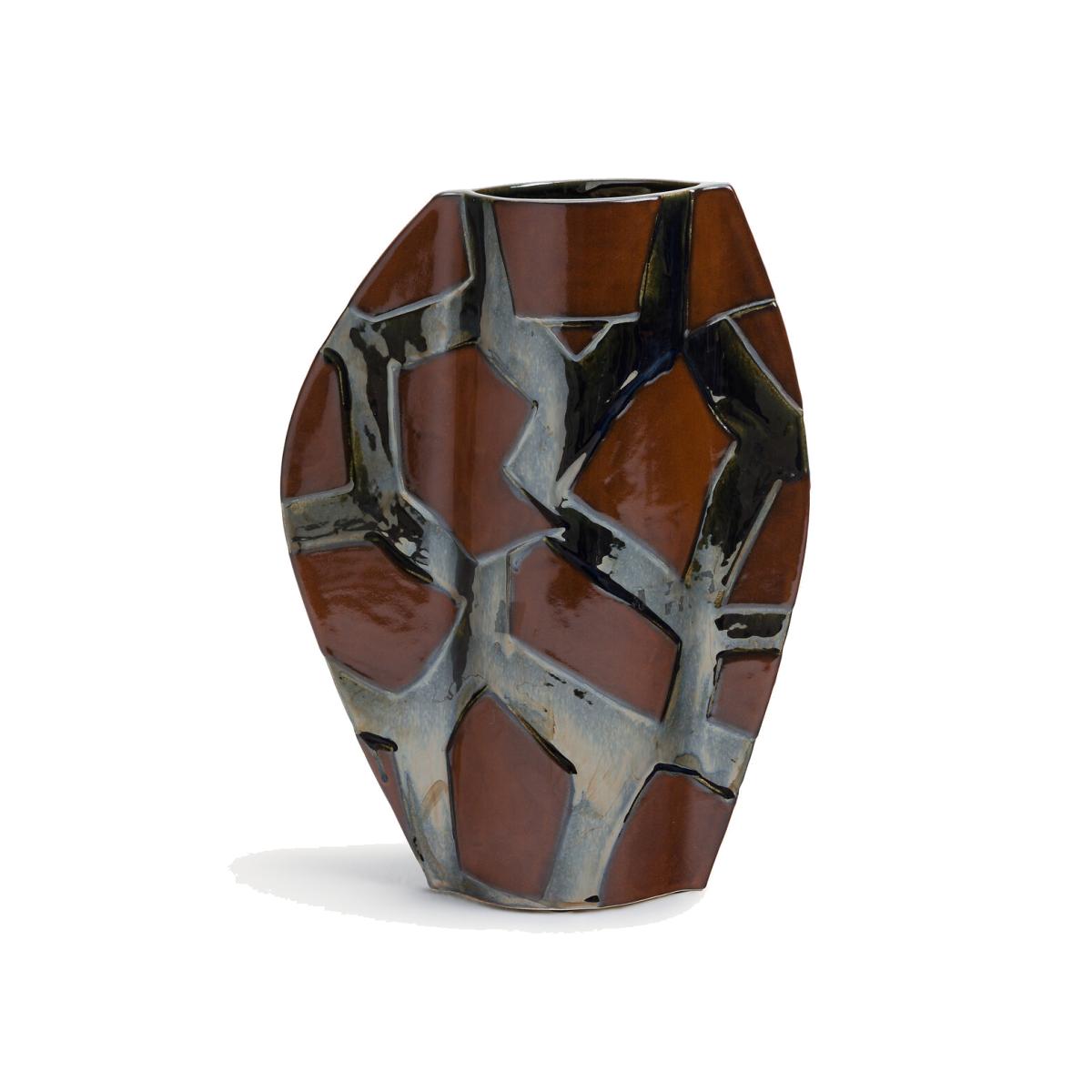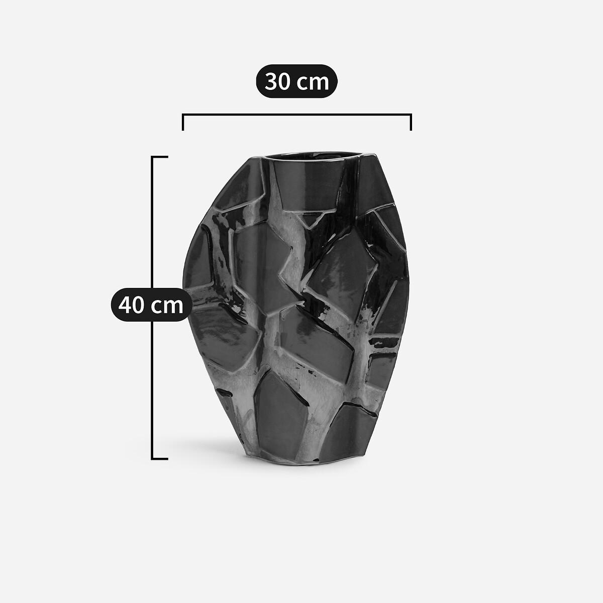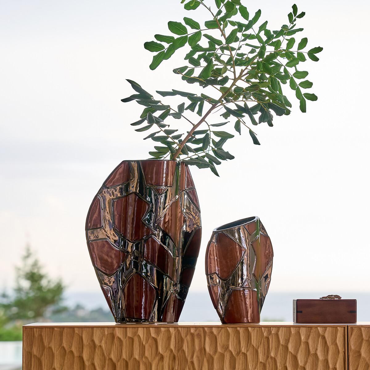 From every angle, this vase reveals its uniqueness. Its unusual shape, created by the continuous lines of its design, is enhanced by its hand-applied enamel. A traditional technique that brings out the vibrant colours, from the deepest brown to the brightest silver. Product Details • Made from enamelled ceramic • Hand-crafted, each piece is unique. Shapes, colours and dimensions may vary slightly from product to product. Care Advice • Ceramic is a solid material resistant to shocks, scratches and stains.. It can be cleaned with a damp sponge. Dimensions • Width: 30cm • Height: 40cm • Depth: 10cm. Dimensions and weight of parcel • 1 parcel • L39 x H49 x D19cm. 1.9kg