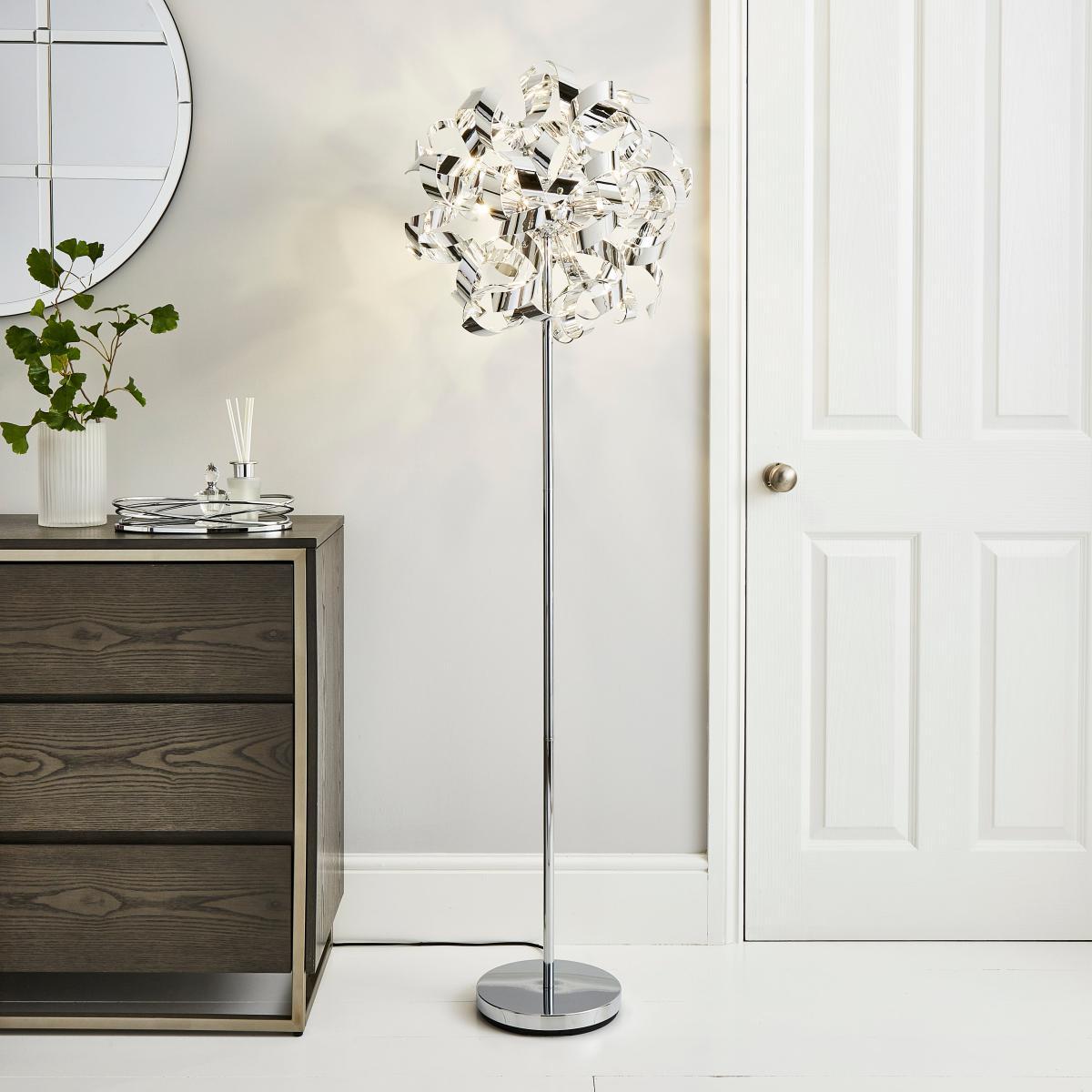 I love this floor lamp for its contemporary chrome finish and eye-catching design, which makes it a versatile statement piece. It works particularly well in modern, minimalist, or industrial-inspired interiors, adding a touch of glamour without overpowering the space. Practical styling tips include positioning it next to a reading nook or seating area to optimise its soft, ambient light, and pairing it with other metallic accessories for a cohesive look. Its sleek silhouette also allows it to fit comfortably into smaller rooms, providing both style and function without cluttering the space.