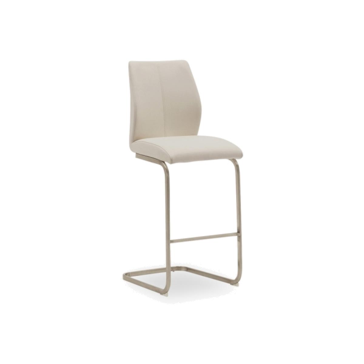 The Iris bar stool will give your kitchen breakfast bar a sleek modern edge. Moulding to your body, the stream-lined cantilever bar stool has a brushed metal base with a built-in footrest for added comfort. Practical, stylish and versatile, this bar stool features a curved, padded seat in taupe, and with the sleek faux leather upholstery, it's easy to wipe down too. Seat Material: Faux Leather Leg Material: Brushed Chrome Metal Assembly: Legs to be fitted Download Assembly Instructions Care: Wipe with a dry cloth Dimensions Seat Height: 75cm Total Size: H 110 x W 42 x D 50cm Weight: 18.5kg Packing Dimensions 47 x 57 x 83cm. Buy your Iris Bar Stool, Taupe from a wide range of Furniture, Chairs, Table & Bar Stools