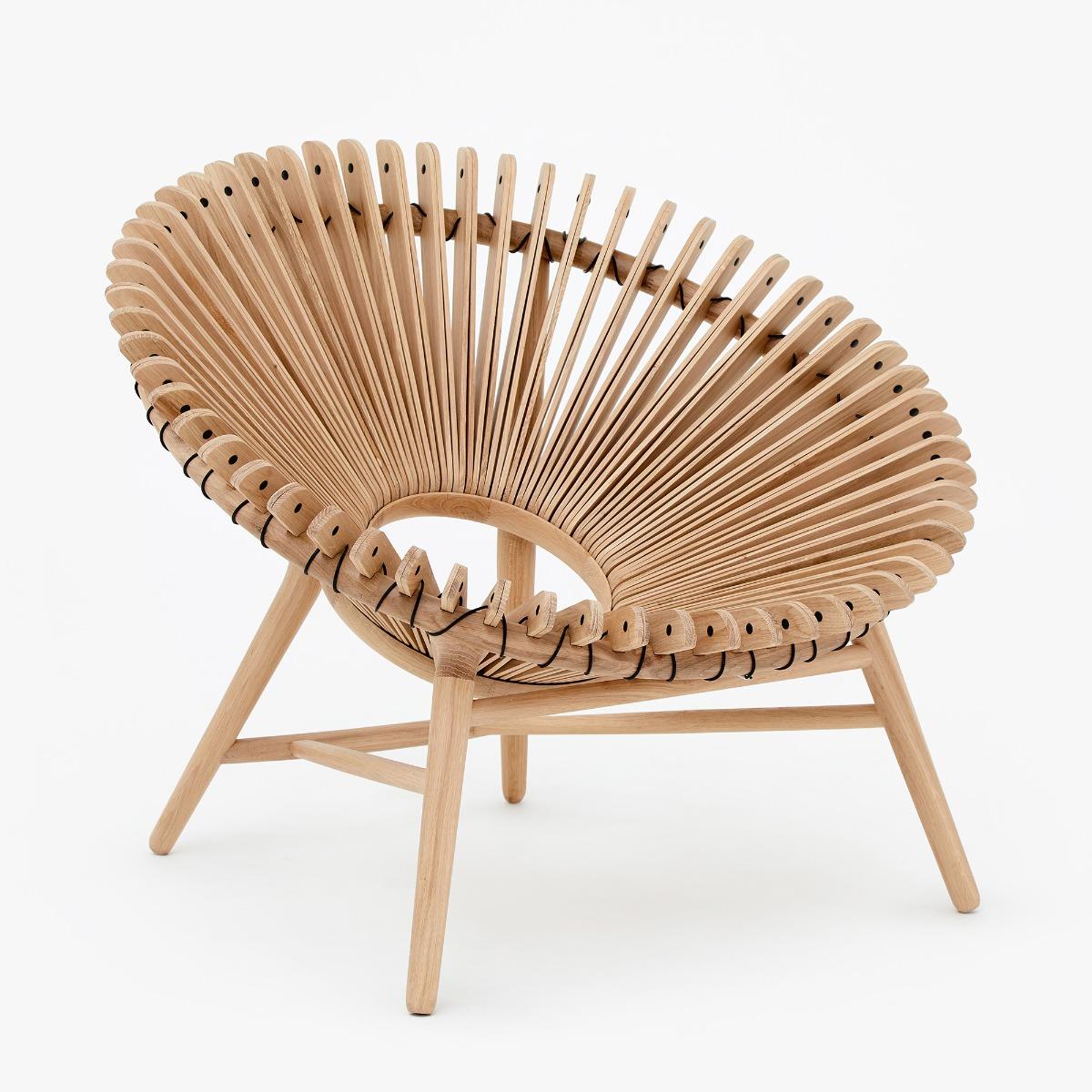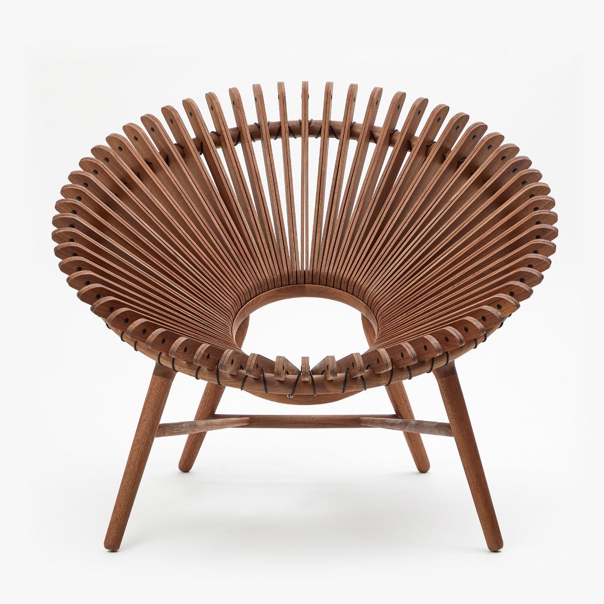 A nod to Sir Terence Conran's timeless Cone Chair and in the works since 2019, the remarkable Iris Lounge Chair by our very own Huw Evans is finally unveiled. Winner of the Design Guild Mark in 2023, the Iris is offered to you today in an oak or walnut finish. Crafted from 120 individual solid hardwood slats, each is individually stretched and manipulated for a sense of fluidity; the Iris is exclusively at The Conran Shop. Through our partnership with New Designers, the UK's leading annual graduate design showcase, we continue to champion innovation, ensuring the next generation can access our incomparable resources, experience, and knowledge. Important Information. As per our. Terms & Conditions. , before placing your order it is important to ensure that this chair fits your desired space and is of a size that can be delivered into your home and so you must conduct your own access check prior to ordering this item. Review our. Furniture Access Check. On how to complete this, using the dimensions provided in the product details.