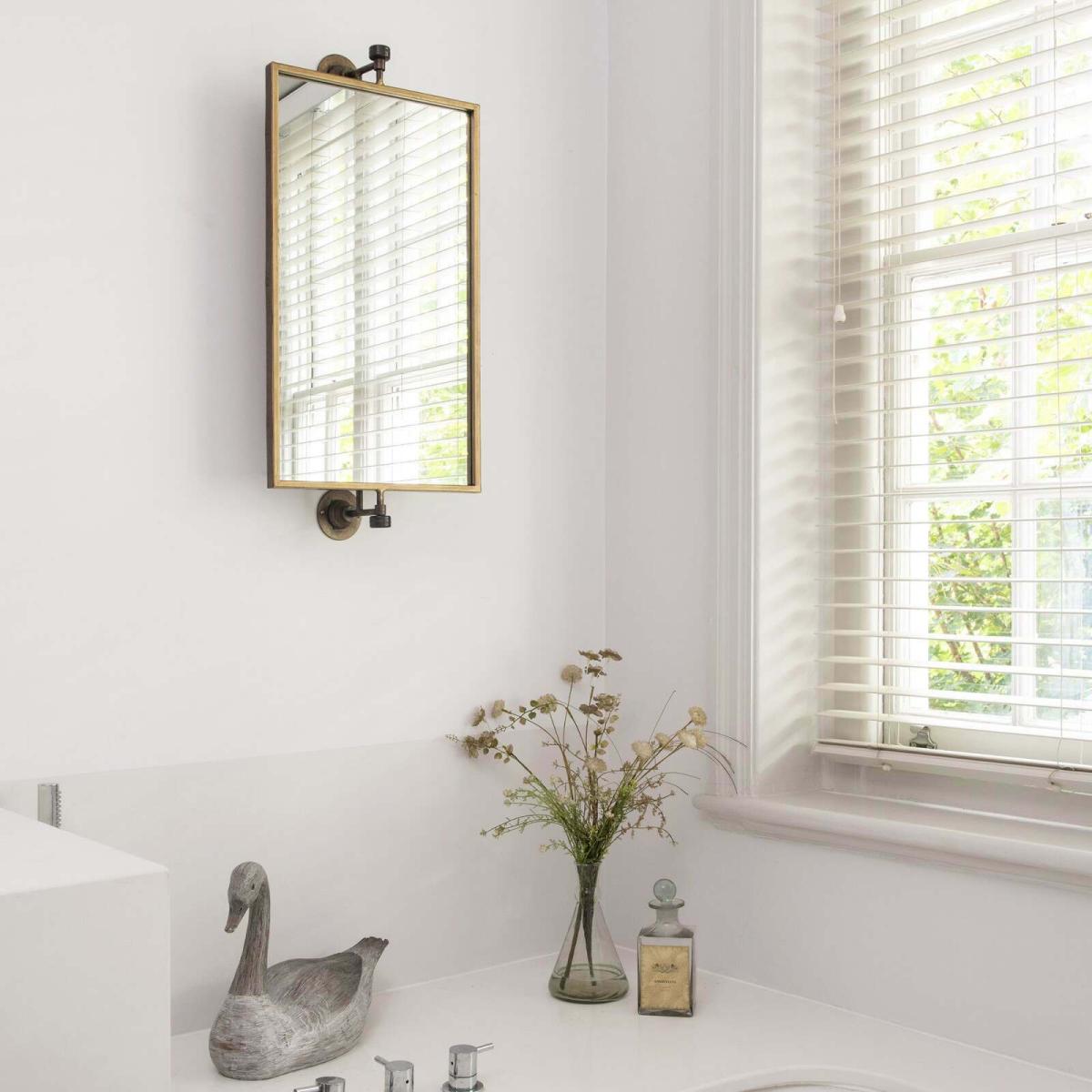 With the handy swivel function, this vintage-inspired rectangular swivel mirror is crafted from iron with an antiqued brass finish.