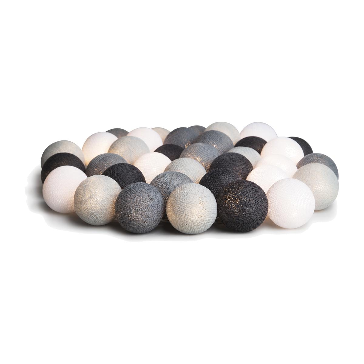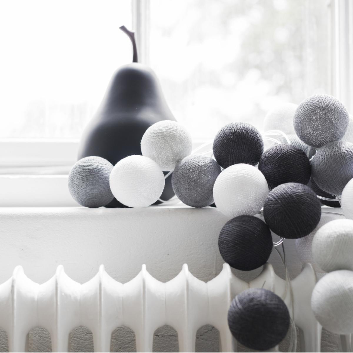 Create a cozy environment with the Graphic Grey string light from the Swedish company Irislights. The light chain consists of a plastic cord with handmade balls in cotton and polyester thread that spreads a soft light when lit. The string light can be placed in several ways to create different looks, maybe in a window or on the table instead of real candles? Choose between different variants.