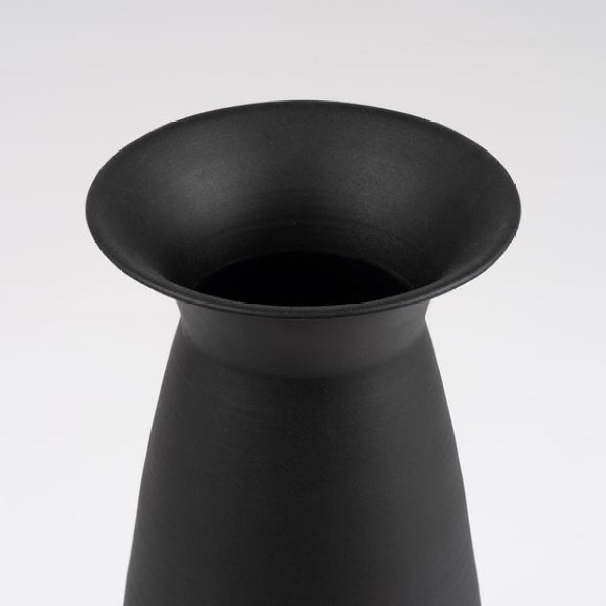 I really like this one for its sleek, contemporary silhouette, making it a versatile choice for various interior styles. It works particularly well in minimalist spaces, modern interiors, or even as a statement piece in a neutral decor scheme. The flared neck gives it a subtle elegance, and it’s perfect for displaying a few simple stems or greenery for added texture. For styling tips, consider pairing it with tall, architectural florals or placing it on a console table or sideboard for maximum impact. Its dark colour also makes it excellent for creating contrast in light-filled rooms or urban-inspired interiors.