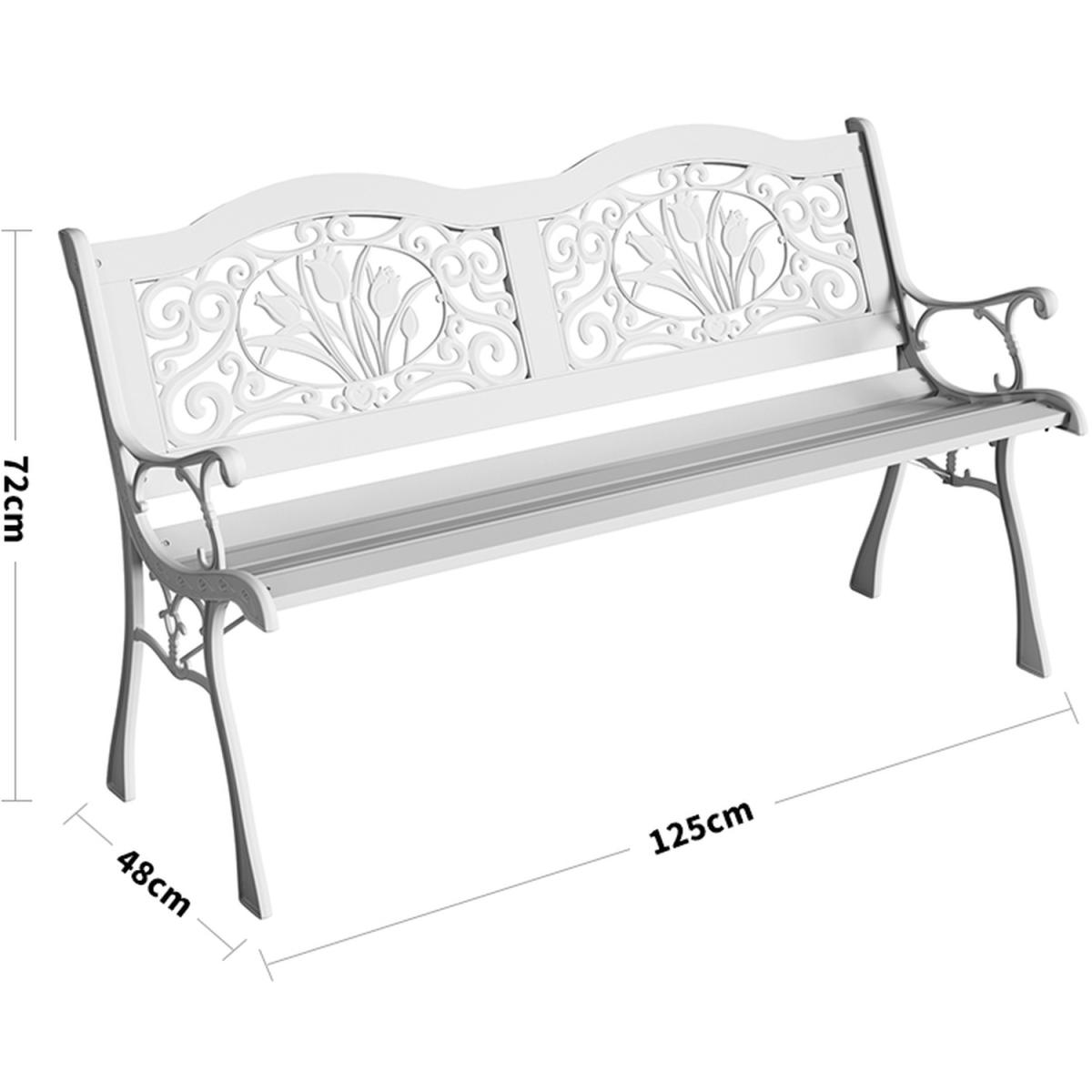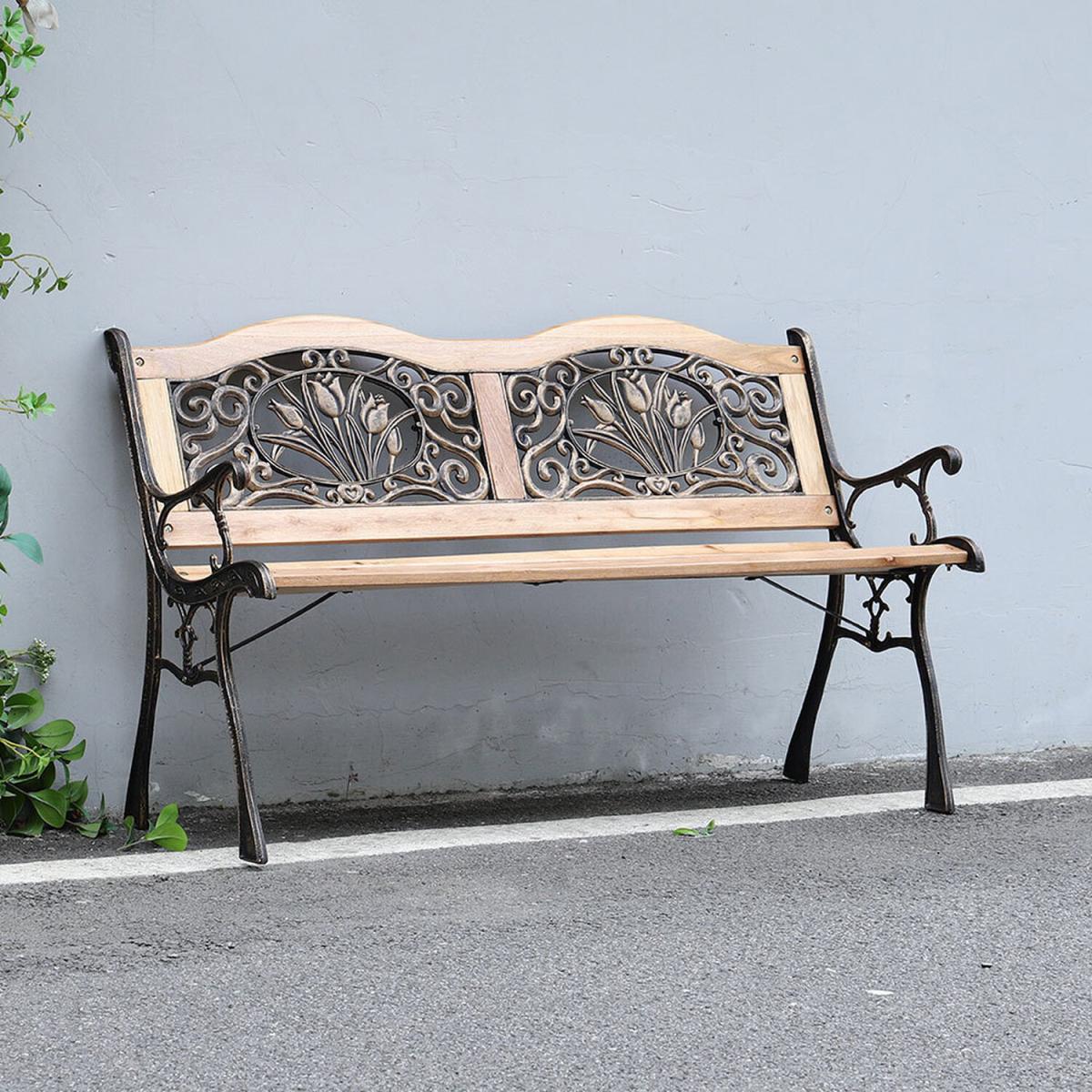 No matter where you place it in the outdoor living area, these garden benches will add a touch of style to any outside space. It features a well-painted cast-iron structure, solid wood seats and backrest frame, and a plastic backrest pattern. The smooth and rounded edges have been carefully designed to ensure seating safety. The comfortable backrest and the curved armrests add an extra sense of fashion and comfort. Put this elegant bench on your backyard, terrace, or even under a beautiful tree, and you will have an ideal place to relax.