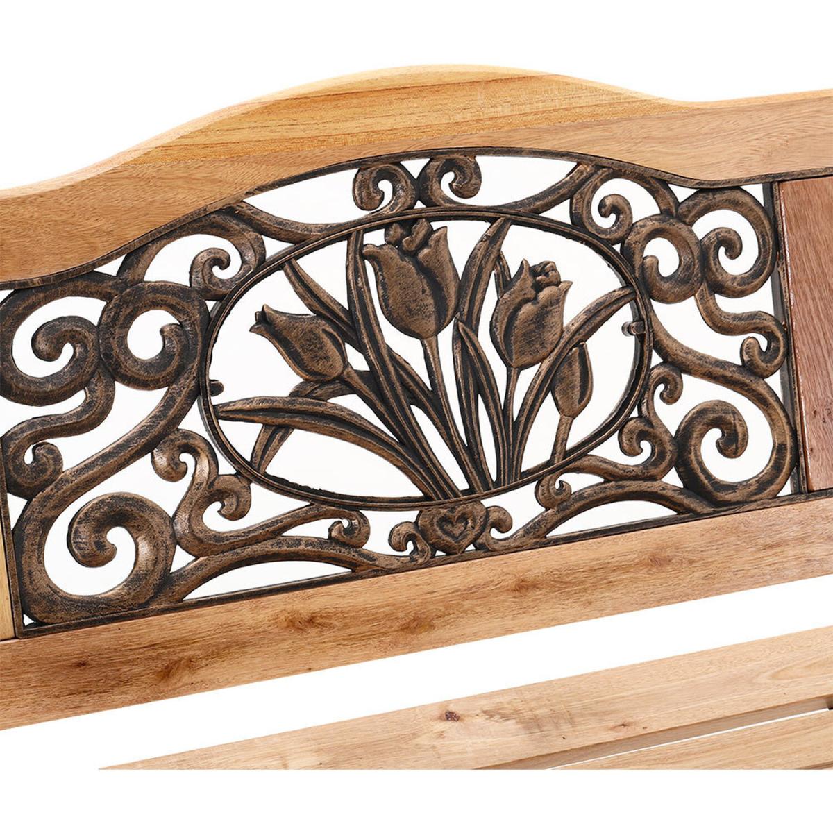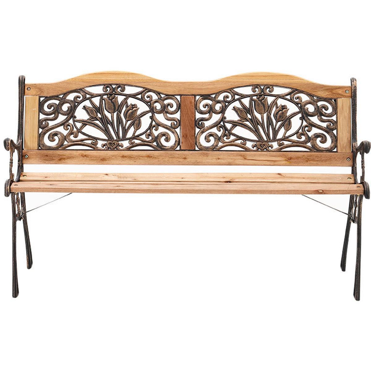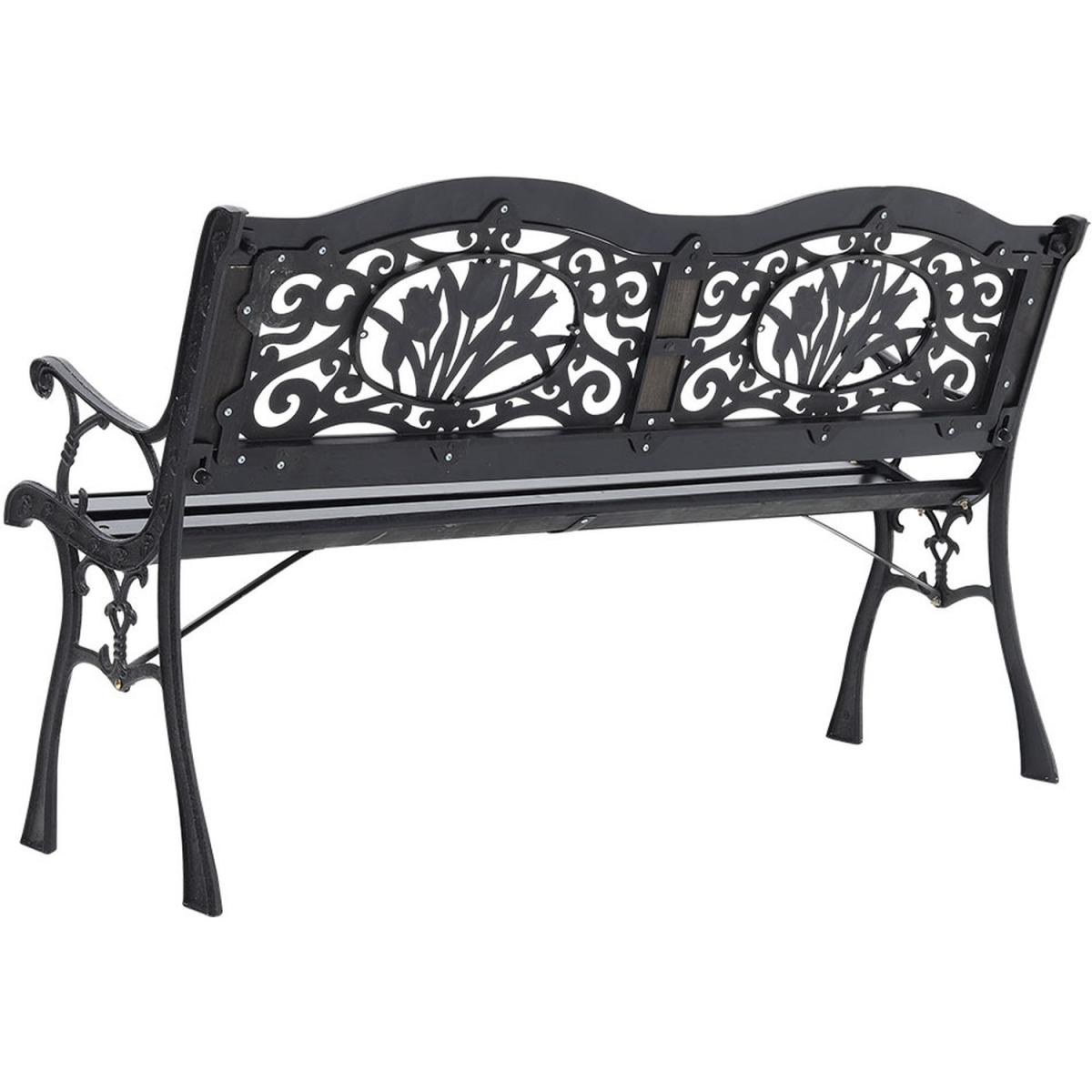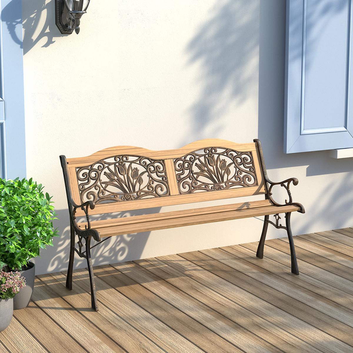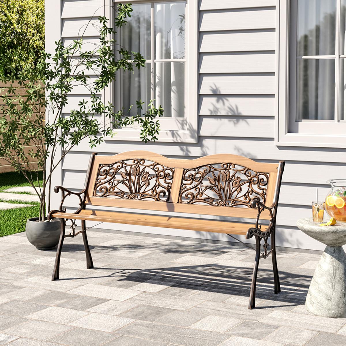 Iron Frame Garden Bench With Floral Hollow Core Back - Brown