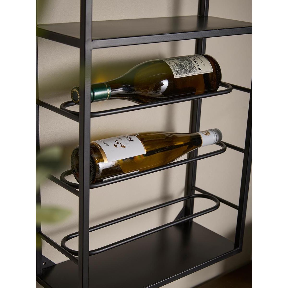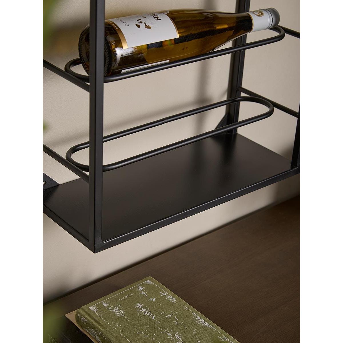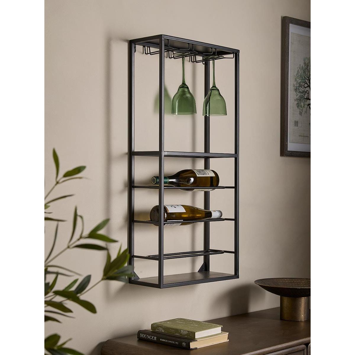 Our wall mounted wine rack is expertly crafted from solid iron. This striking piece blends industrial edge with modern minimalism. An open, airy silhouette, finished in matte black, makes a bold yet unobtrusive statement, ideal for compact interiors.  Designed with both beauty and utility in mind, the upper tier features storage for stemmed glassware, while the lower shelves offer a secure, stylish home for your wine collection.  Whether placed in a kitchen, dining room, or home bar, this wine rack brings effortless organisation to any setting.