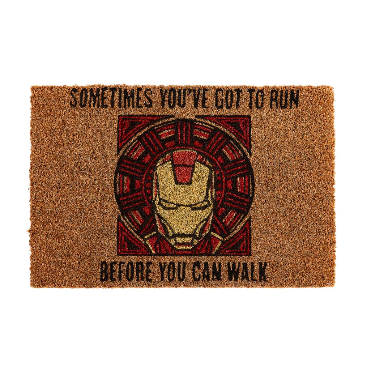 * Iron Man design* Made from durable coir fibres* Anti-slip backing Calling at all the Iron Man fans, welcome your guests with our Iron Man Coir Doormat. Featuring a fun text of 'sometimes you've got to run before you can walk', this doormat is not only a charming welcome to your home but also built to withstand the great outdoors. Crafted from durable coir fibres with an anti-slip backing, it ensures both style and functionality at your doorstep. Allow dirt to dry then clean with a coarse brush.
