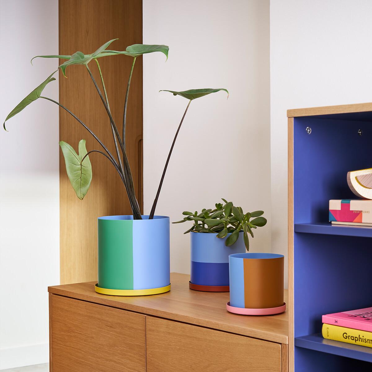 I love this plant pot holder for its modern, colour-block design that works well in contemporary and minimal interiors. Its clean lines and muted tones make it a versatile piece, perfect for adding a pop of colour without overpowering the space. It works wonderfully on a windowsill, shelf, or as a centrepiece on a side table, especially when paired with simple, green foliage. For styling tip: consider grouping it with other planters in complementary shades or natural textures to create an inviting, layered look. Its compact size makes it ideal for small to medium plants, and the stand not only adds a decorative touch but also offers practical support, keeping your plant at an attractive height.