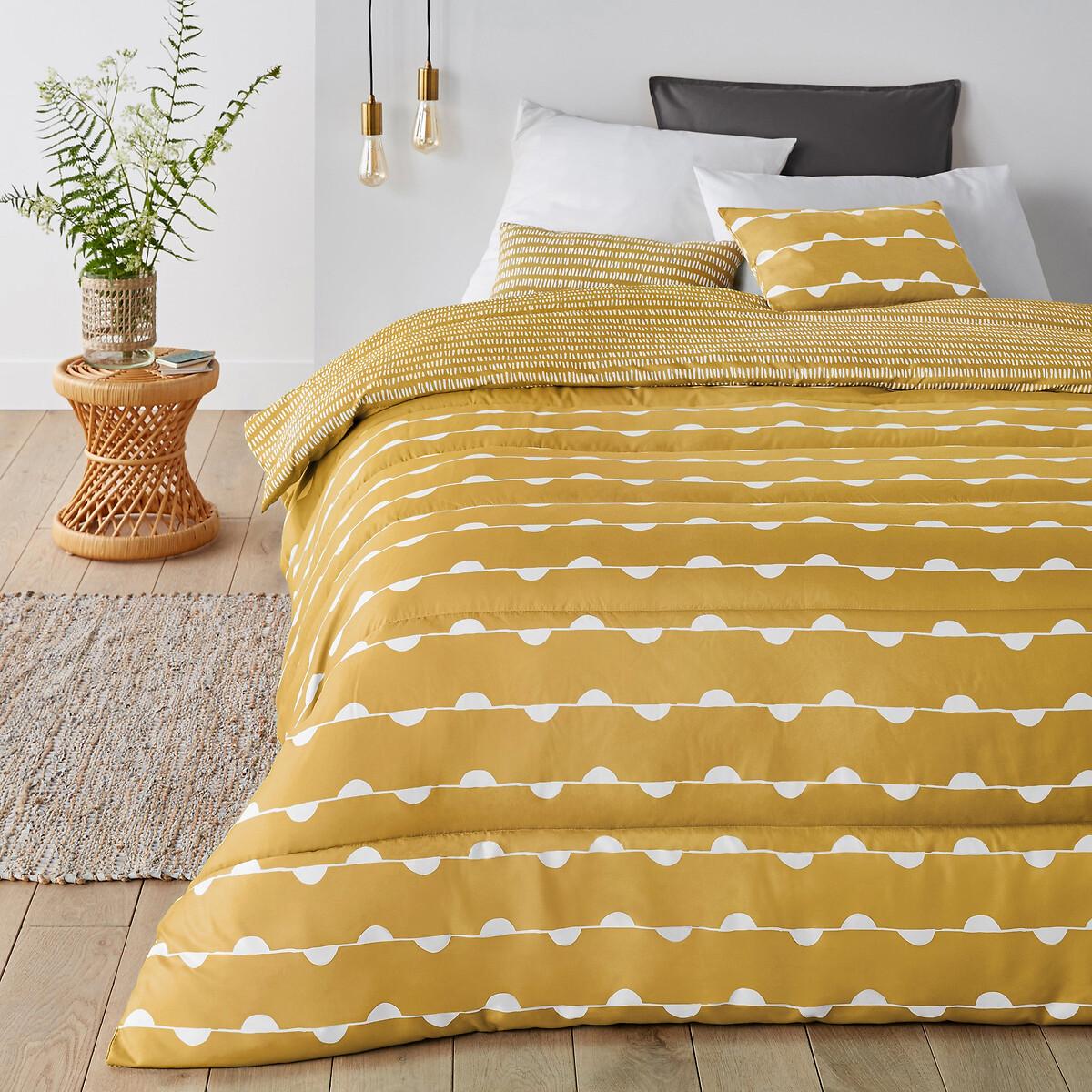 The Irun microfibre quilt. Choose a side to best suit your style: the Irun quilt is patterned with different geometric motifs on either side. Product Details • Cover: 100% microfibre polyester • Patterned with different geometric motifs on either side • Edge-to-edge finish • Stuffing 100% polyester • Machine washable at 40°CDimensions • 140 x 200cm • 220 x 240cm • OEKO-TEX® Standard 100. Standard 100 certification by OEKO-TEX® tests textile products for harmful substances via an independent, international label.