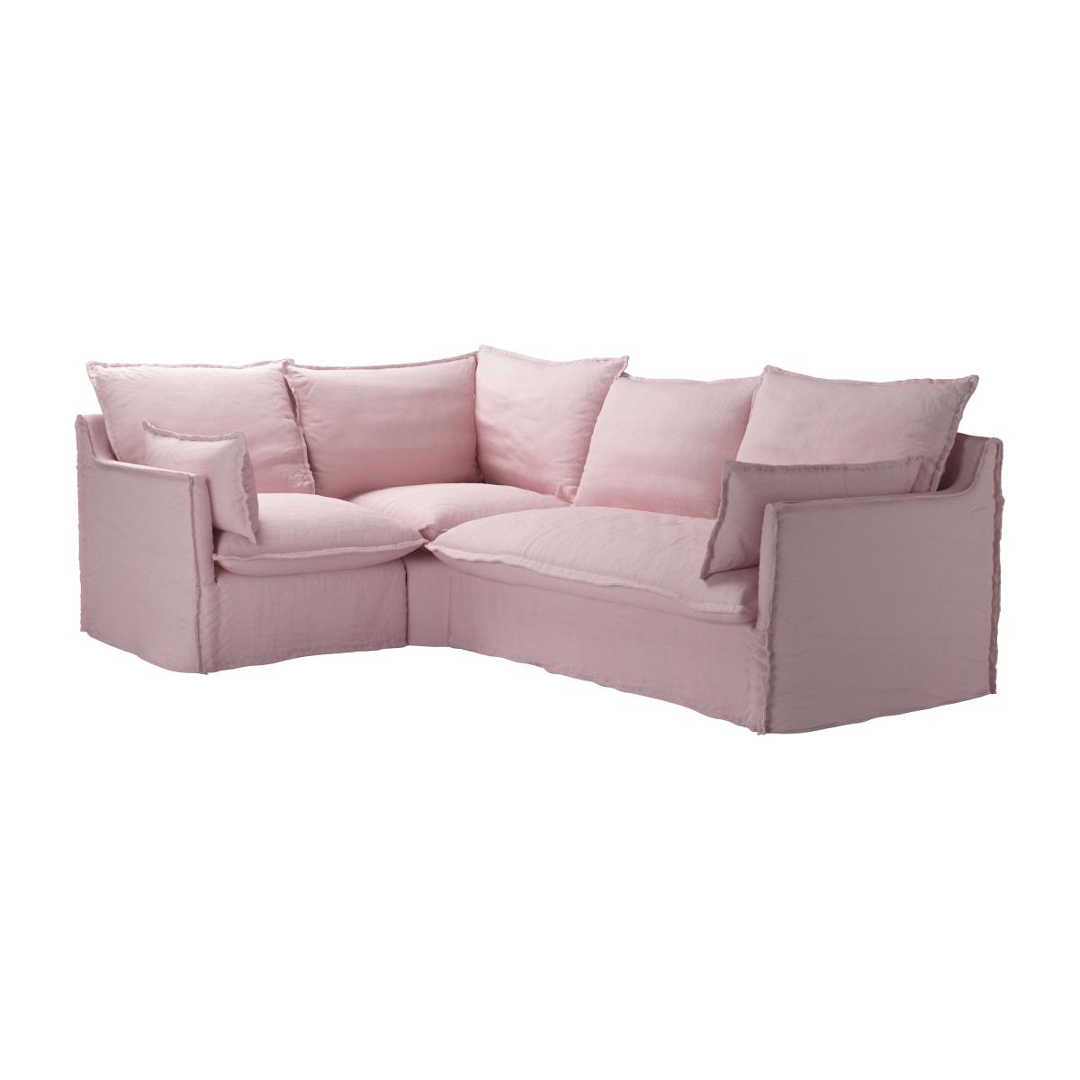 Isaac Asym: LHF Single w RHF 2 Seat Sofa Bed in Powder Pink Brushed Linen Cotton - sofa.com