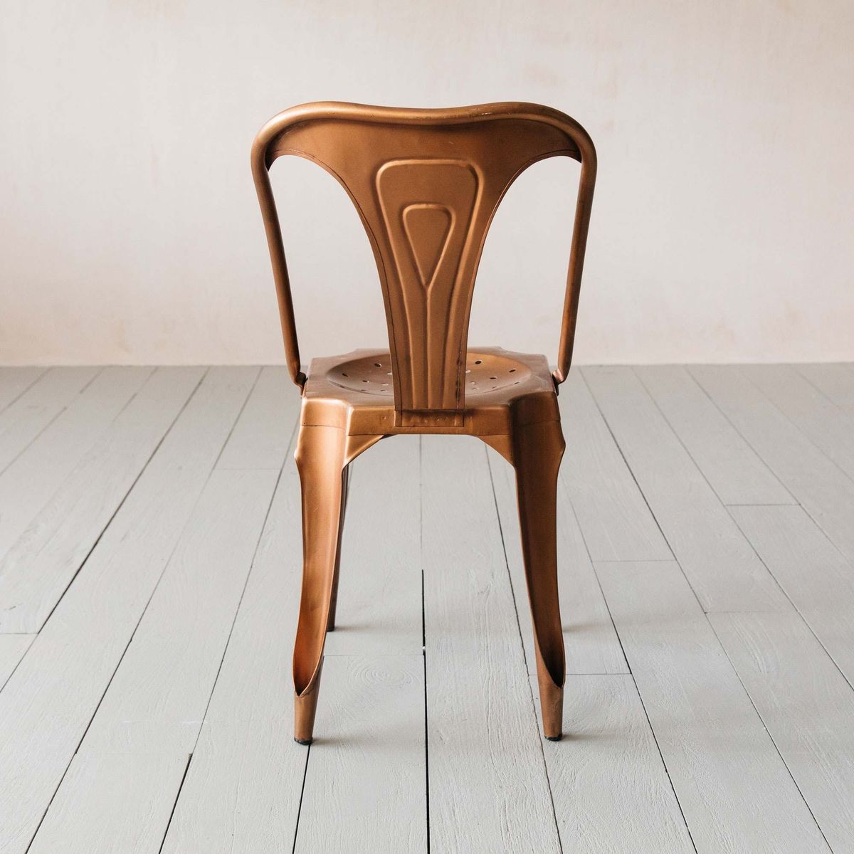 Cast in iron with a warm brushed brass finish, the Isaac iron chair in copper is the definition of industrial chic. It would look great in a kitchen;contemporary or traditional.