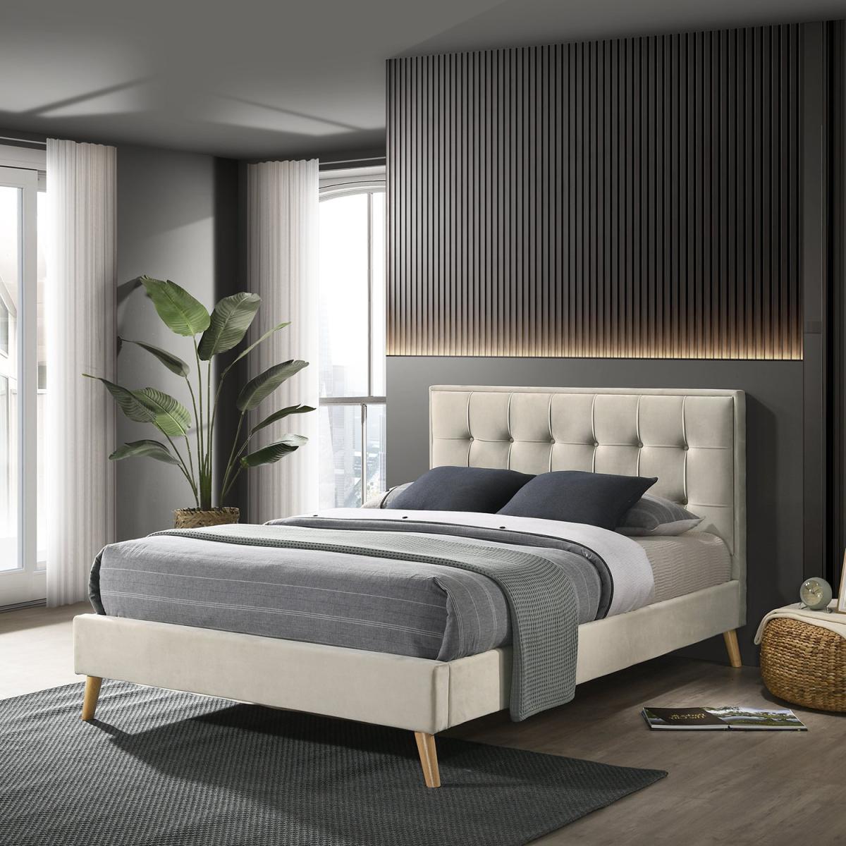 Our Isabella Bedframe showcases simplicity at its absolute best. Its smooth velvet upholstery and button detailing combine with the turned wooden feet and padded headboard to create a sleek modern design. The epitome of contemporary chic, this bed's neutral colouring keeps it on trend and maintains your chic aesthetic.