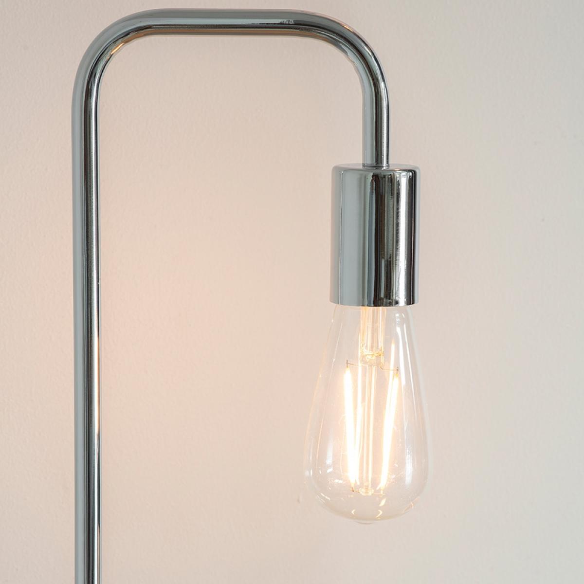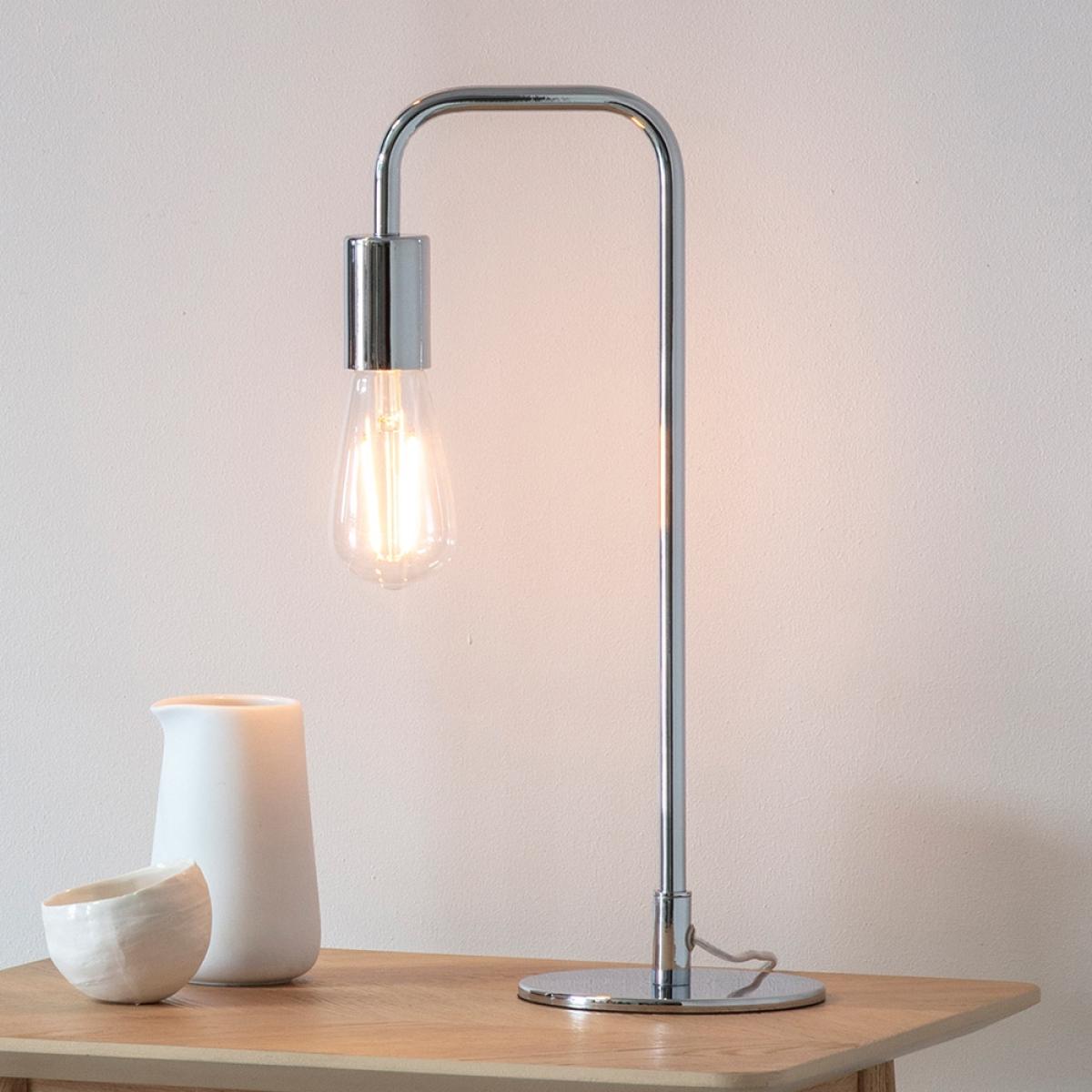 I love this lamp for its sleek, minimalist design and polished chrome finish, which adds a touch of modern sophistication to any space. It works particularly well in contemporary or minimalist interiors, but can also bring a chic contrast to more traditional or eclectic settings. For styling, consider placing it on a clean, monochrome surface to enhance its reflective qualities, or pair it with other metallic accents for a cohesive look. It’s a versatile piece that can serve as both a functional light source and an eye-catching décor element, especially when paired with simple, streamlined furniture. Practical tips include using warm bulbs to soften the chrome’s sheen and prevent glare, making it ideal for bedside tables, desks, or sideboards.