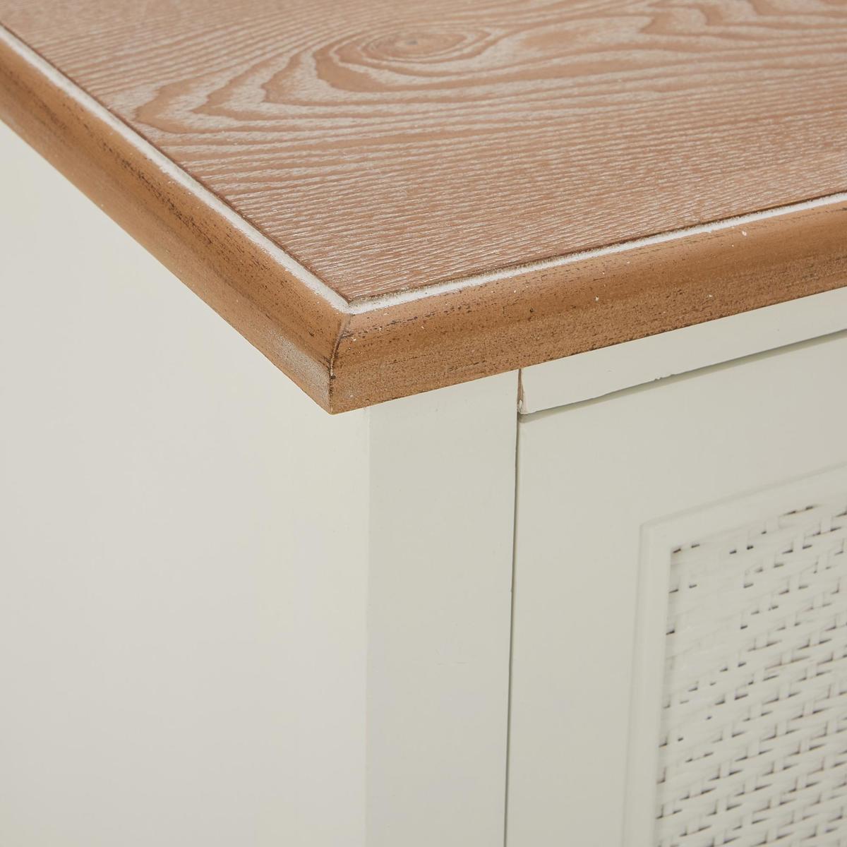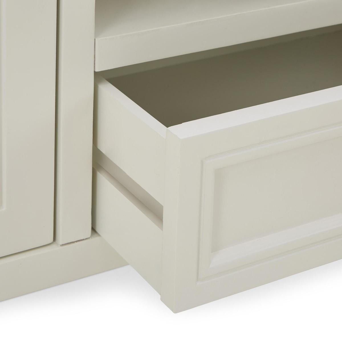 I love this TV unit because of its versatile design and calming colour palette. The ivory finish adds a touch of softness to contemporary or coastal interiors, while the natural wood top brings warmth and texture. It works particularly well in spaces with a light, airy colour scheme or a relaxed, seaside feel. For styling, consider keeping the top surface uncluttered with a few curated accessories, such as candles or decorative bowls, to maintain a clean look. Internal organisation can be enhanced with storage baskets or boxes for remotes, tech accessories, or manuals. This media unit is a practical yet stylish piece that can anchor your living room, blending function with understated charm.