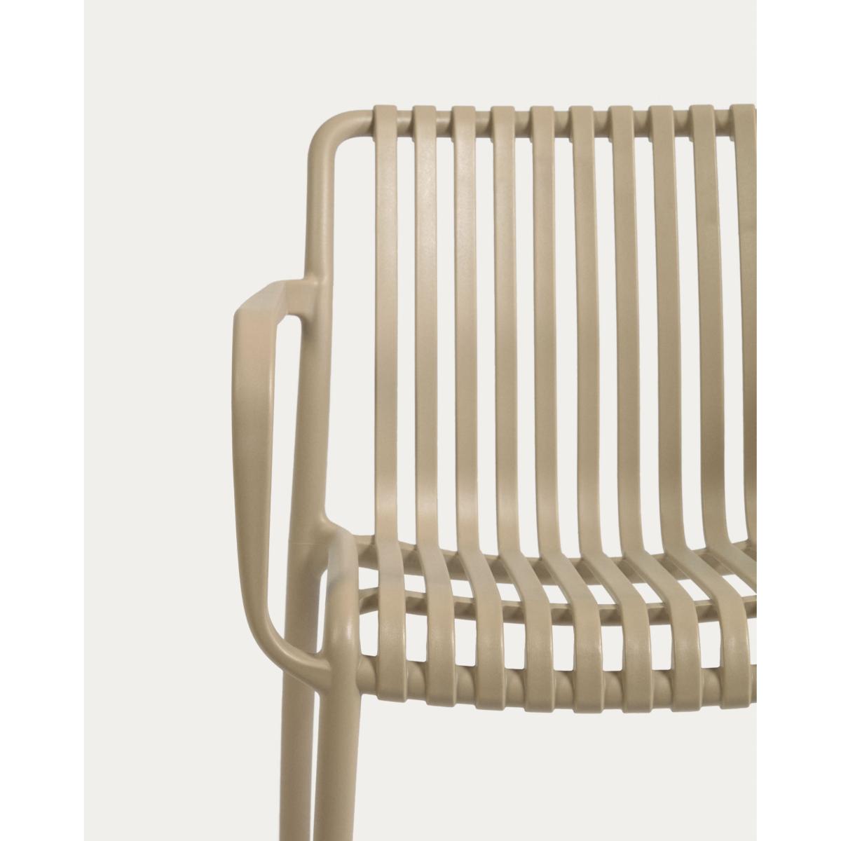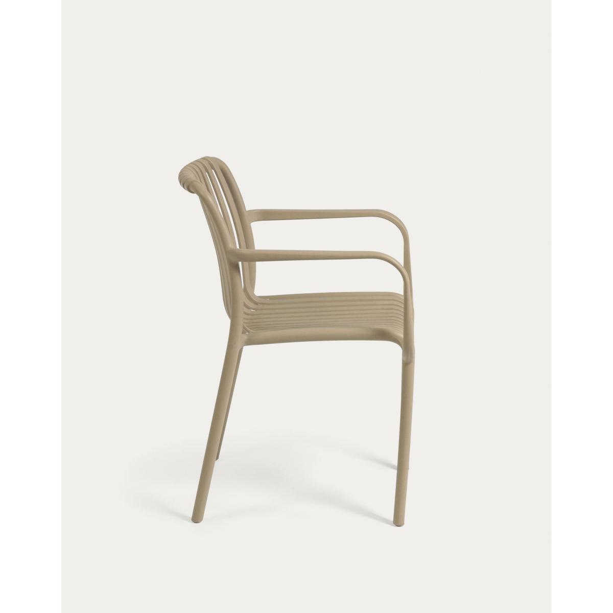 I love this chair for its clean, contemporary design that seamlessly blends function with style. The beige colour is versatile, enabling it to complement both minimalist and natural outdoor settings. It works particularly well in modern patio or garden schemes, adding a relaxed yet refined touch. Practical styling tips include pairing it with neutral or earthy-toned cushions for added comfort, or stacking a few nearby for efficient storage when not in use. Its sturdy, stackable design makes it perfect for outdoor gatherings, and the neutral tone ensures it won't clash with vibrant floral arrangements or patterned outdoor fabrics. This chair offers both practicality and aesthetic appeal for any outdoor space.