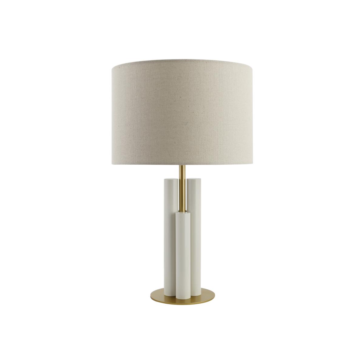 Illuminate your space with the Isadora Table Lamp. This table lamp is a captivating blend of modern design and timeless elegance. This lamp features a sleek white base accented with gold accents, creating a luxurious and inviting atmosphere. This table lamp provides a warm glow. It is ideal for bedside tables, desks, or as a decorative piece.