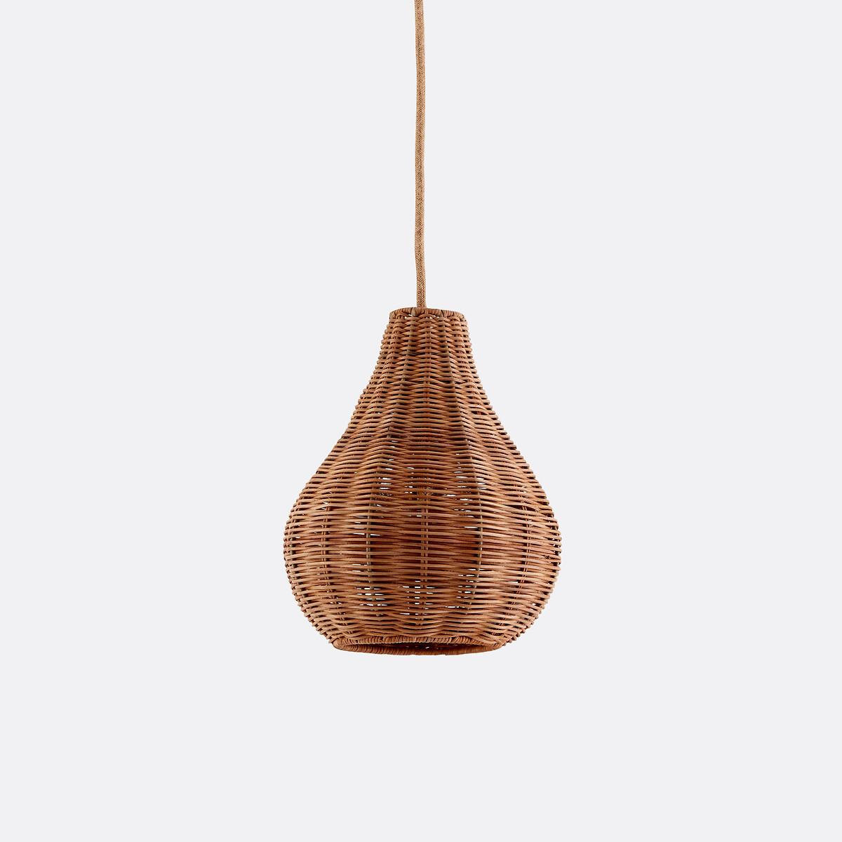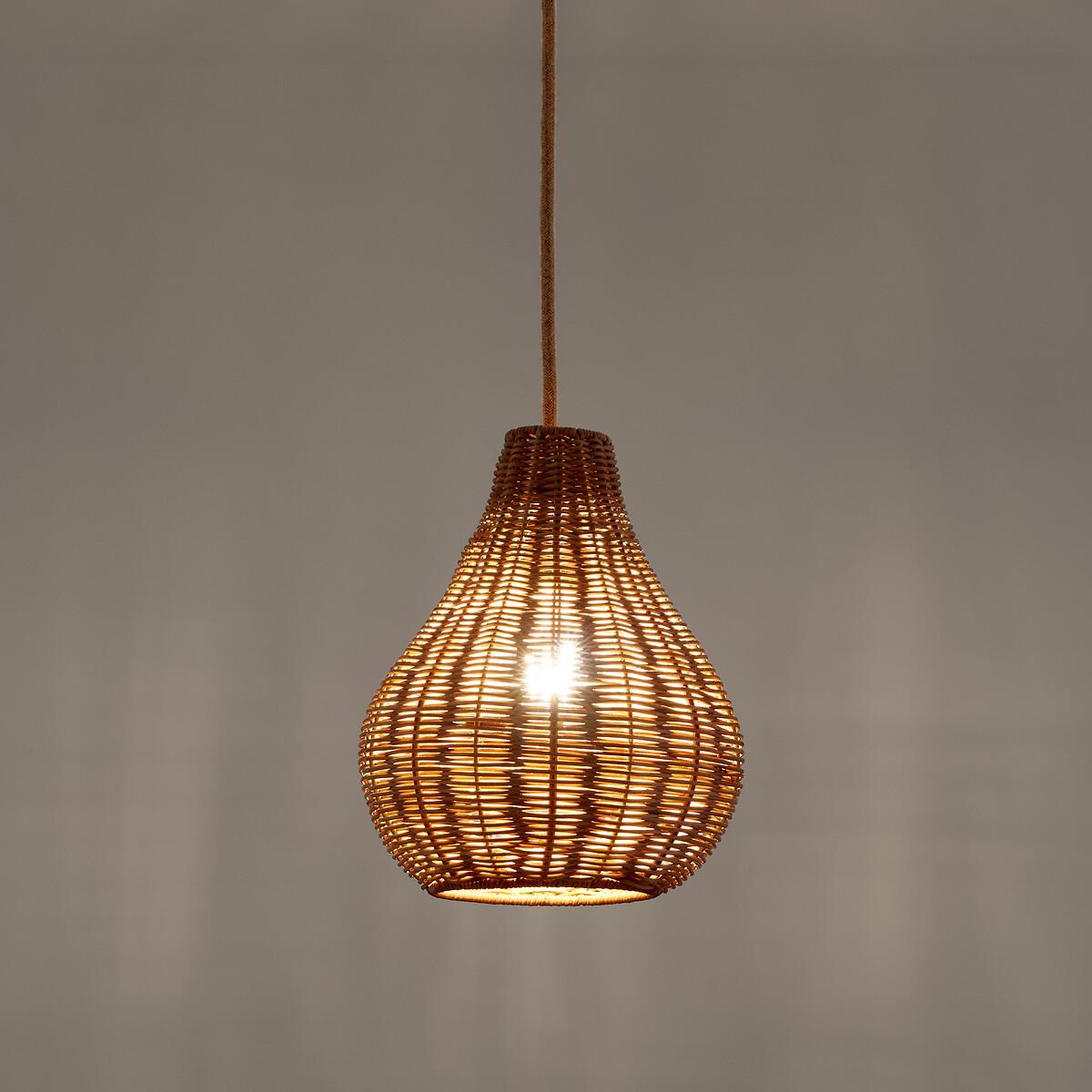 Handmade rattan weave, teardrop design: the Isao ceiling light diffuses a soft and subdued light in a room.