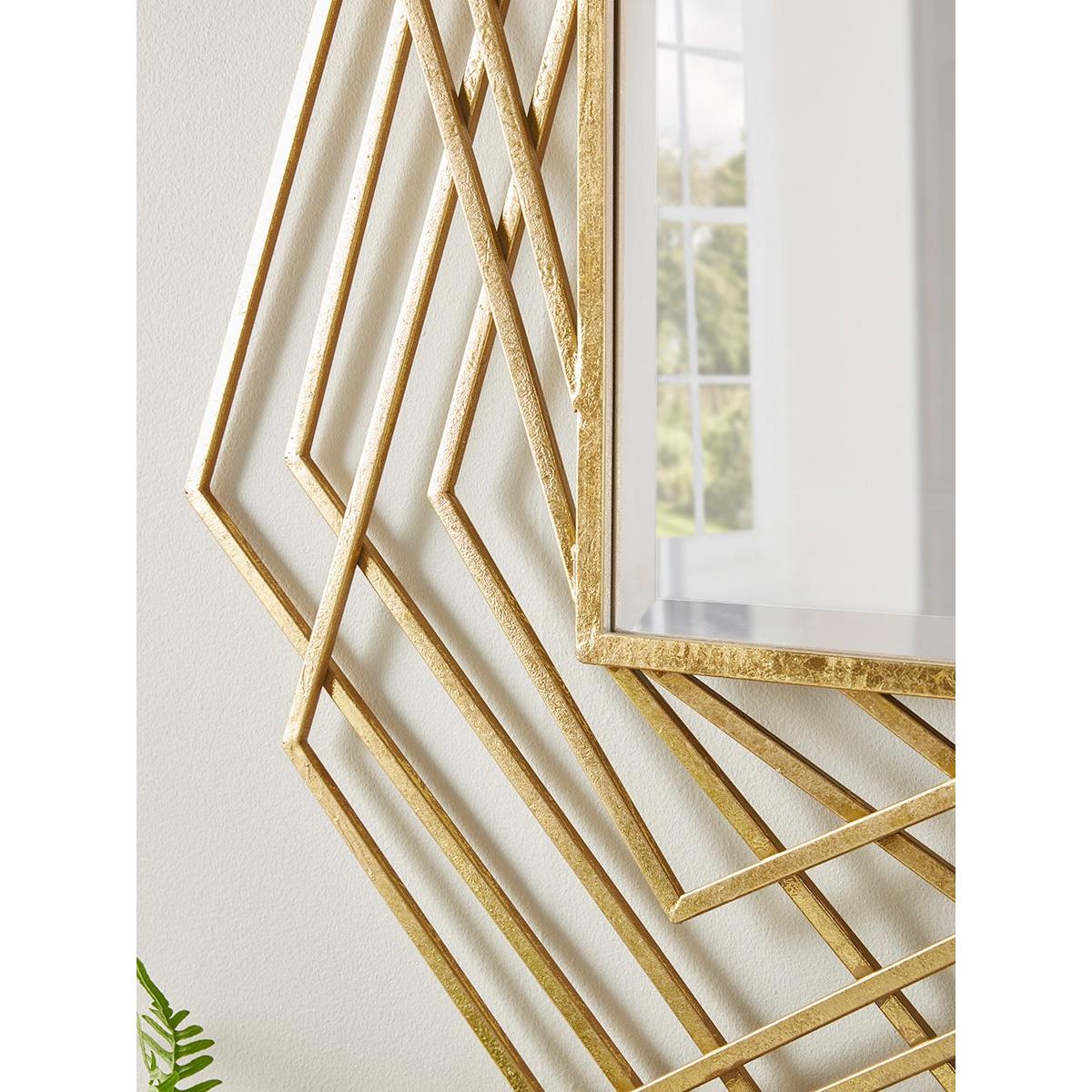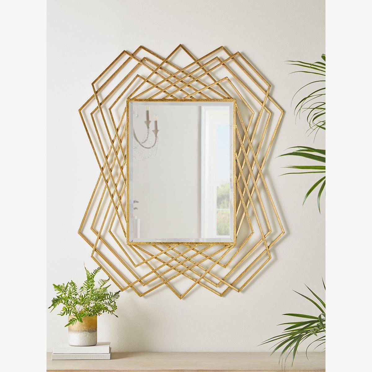 A combination of striking wall art, thanks to the flamboyant geometric gold toned frame and versatile, light enhancing mirror, our new Isha Mirror makes a stylish addition to your home. This mirror can be hung in portrait or landscape to really enliven your setting.