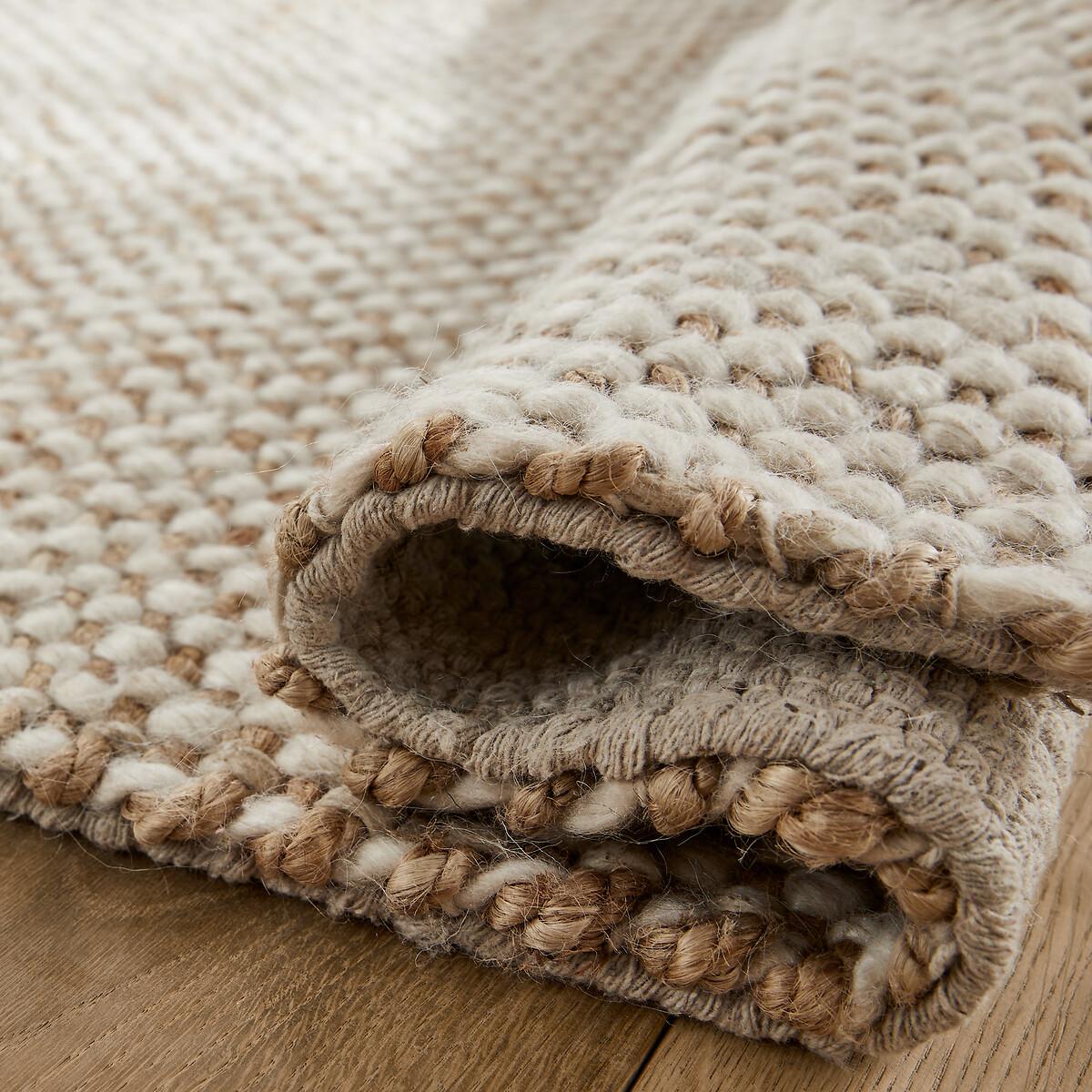 I love this hand-woven rug for its natural, textured look, which instantly adds warmth and character to a space. It works particularly well in neutral, Scandinavian-inspired interiors or rustic schemes, where its wool and jute fibres can contribute to a cosy yet understated aesthetic. Practical styling tips include layering it with a slightly larger, flat-woven runner in high-traffic areas, or pairing it with simple, modern furniture to let its natural fibres stand out. Its sturdy construction makes it suitable for living rooms and hallways, while its earthy tone helps anchor a minimalist colour palette effortlessly.