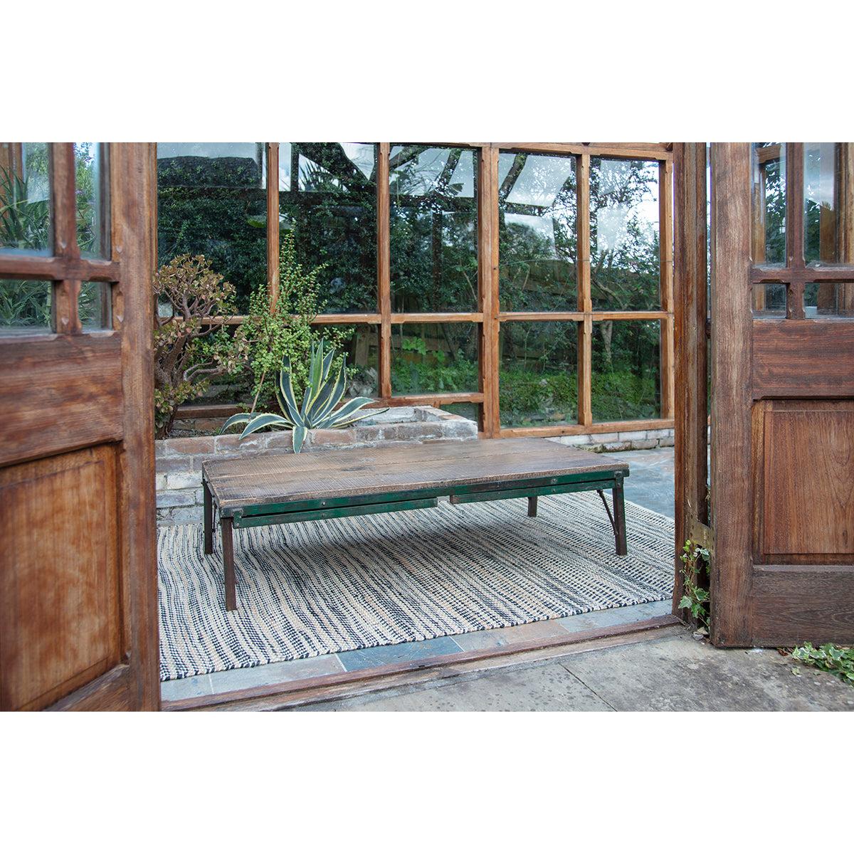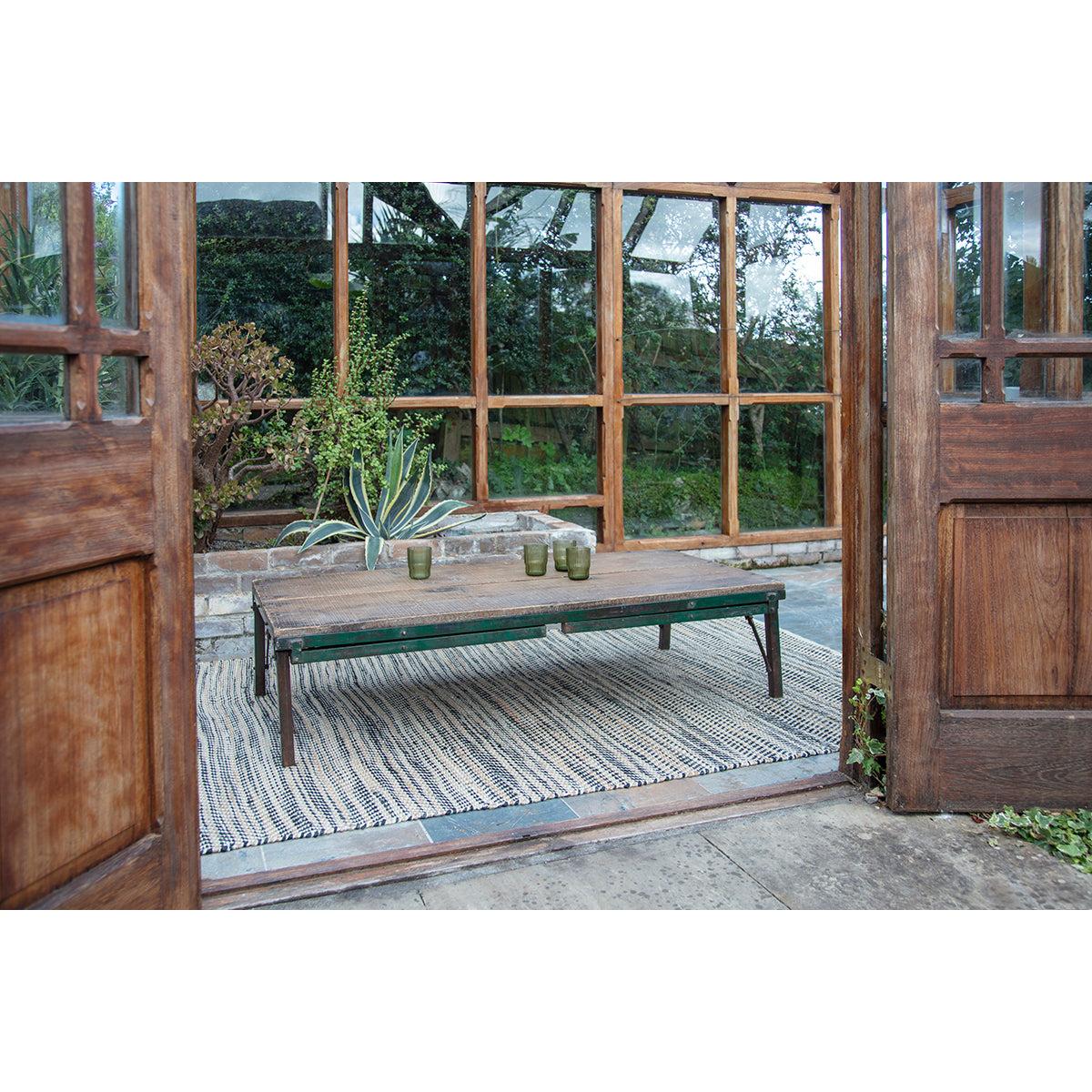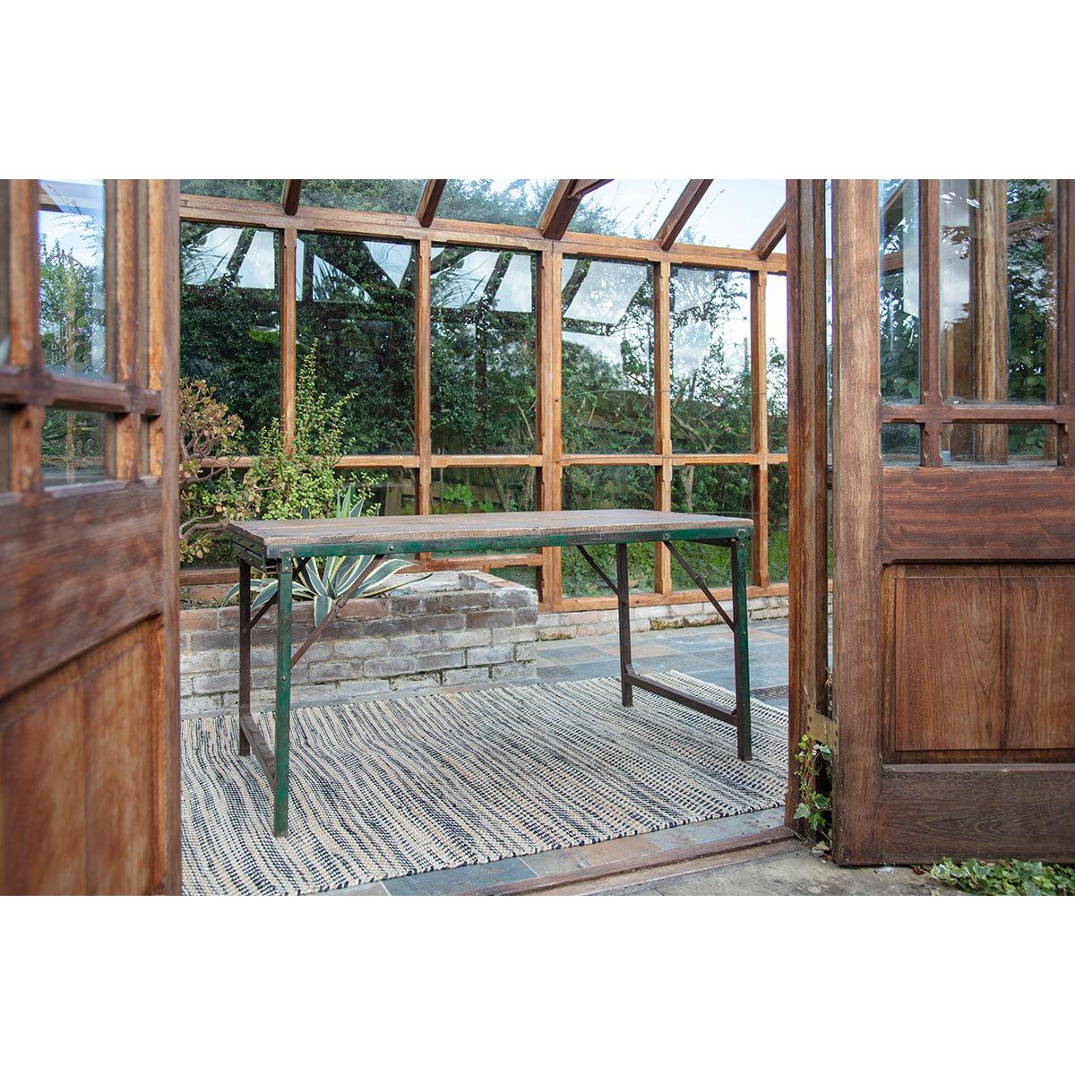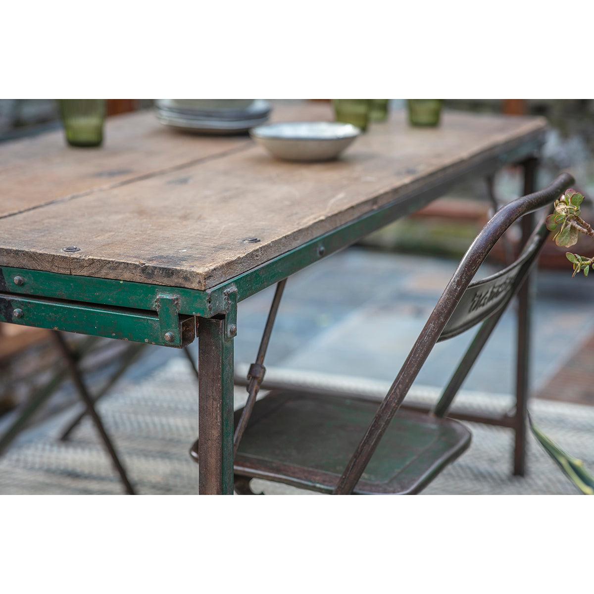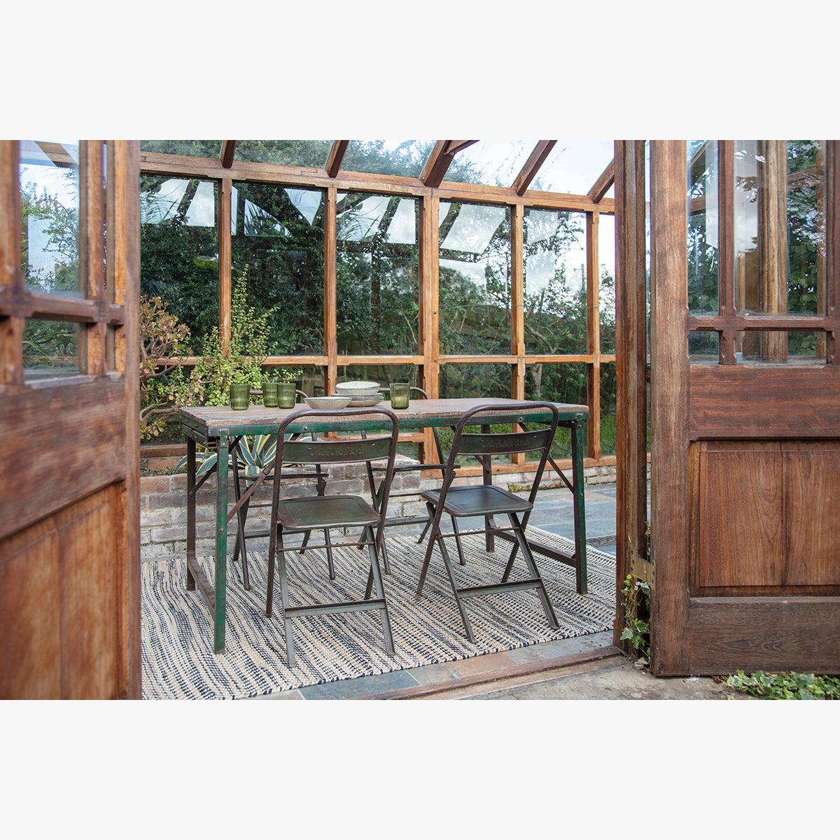 These Ishan folding tables are made from reclaimed wood and distressed metal in a unique design. The pieces include two sets of legs, a long and a short allowing you to use the piece as a dining table or a low coffee table. The textures and tones of the reclaimed wood add an attractive, tactile quality. Style with our Ishan folding chairs.