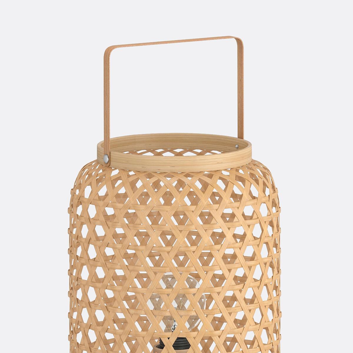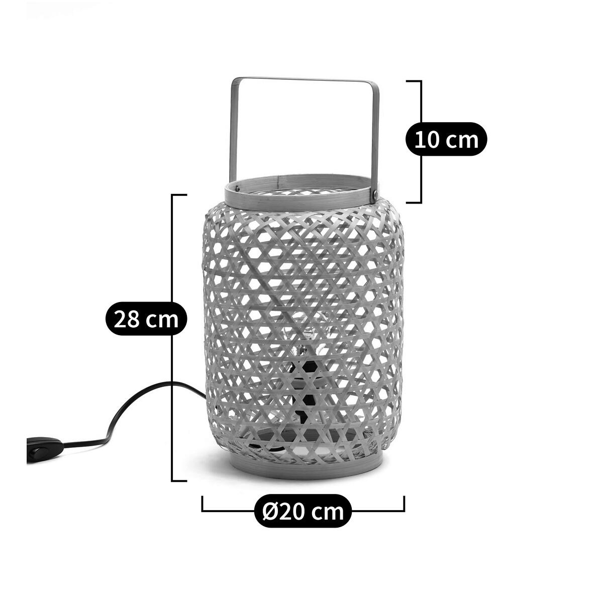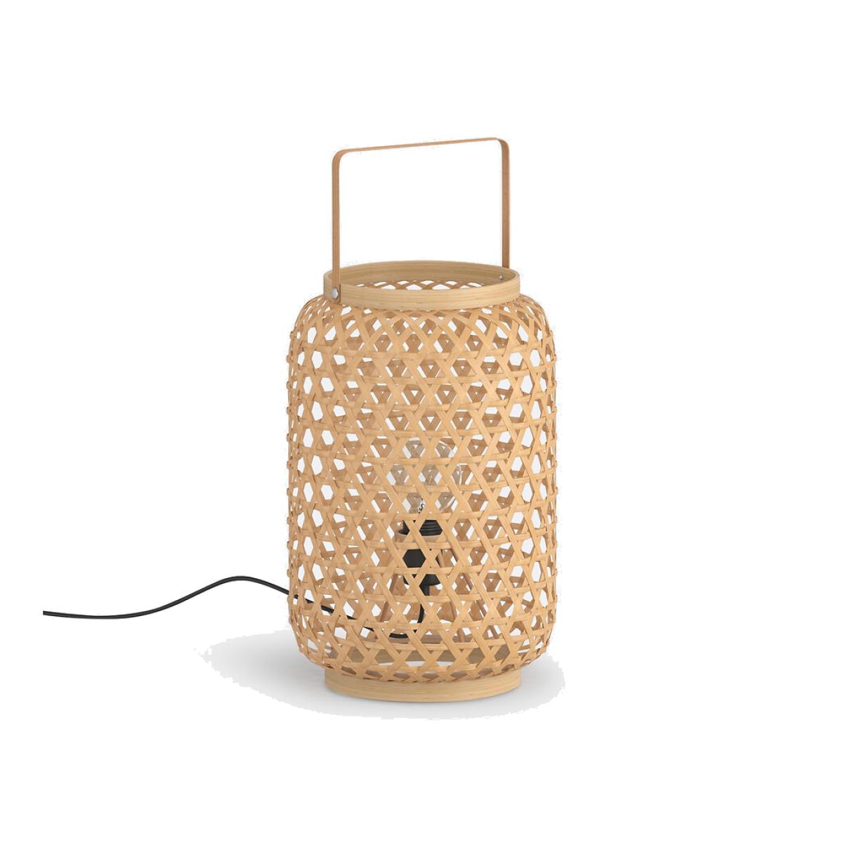 The Iska bamboo table lamp. A trendy, artisanal lamp which diffuses the light softly through your home. Artisanal craftsmanship. Product Details • Fitted with E14 socket compatible with 40W max bulb, (not included) • Supports bulb class A to E • Hand woven bamboo • Iron structure covered with epoxy paint. Dimensions • Diameter: 20cm • Height: 28cm • Handle 10cm
