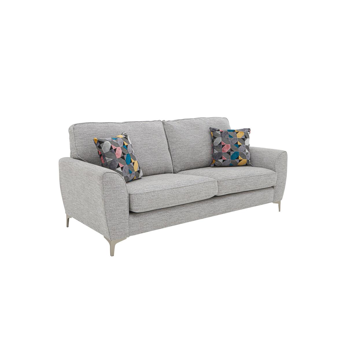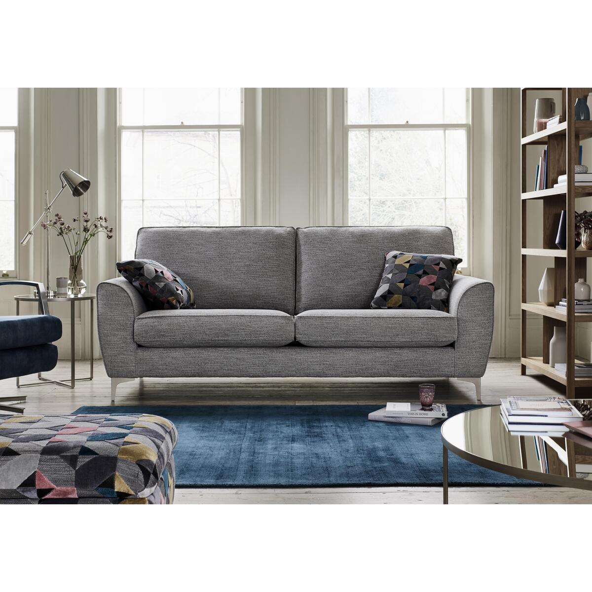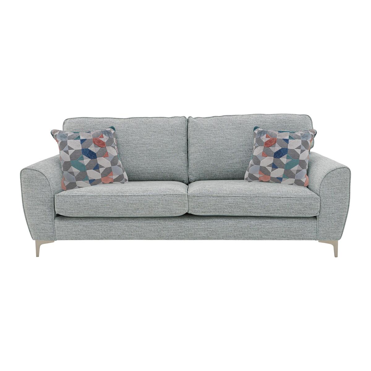 Colourful, contemporary and comfortable. 20-year guarantee on the frame. Handmade in Britain. The Isla 4 Seater Classic Back Fabric Sofa combines an inviting contemporary look with a seriously comfortable feel. The cold cure moulded foam seat cushions come with a 10-year guarantee – that’s how comfy they are. They give you a firmer, more supportive sit that’s complemented by soft hollow blown fibre back cushions which give you that all important ‘sink into’ feeling. Handcrafted in the UK by an award-winning furniture maker, there’s quality in every stitch. Sleek and modern brushed steel feet accent the soft woven chenille fabric beautifully and ensure this sofa looks stylish wherever it’s placed. Two ultra-soft velvet, fibre-filled scatter cushions are included.