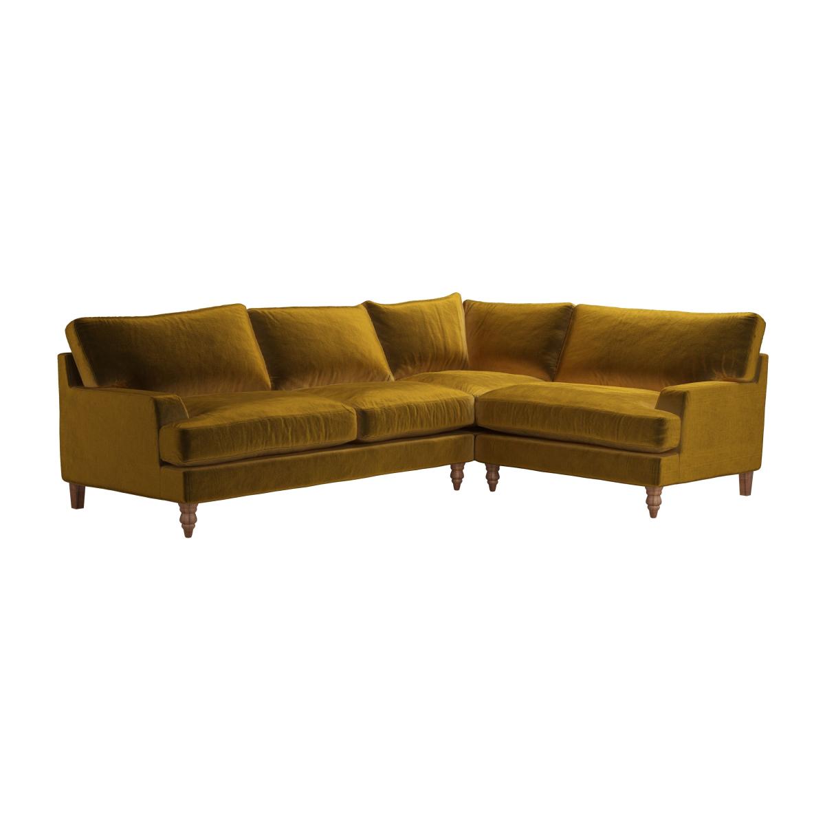 Isla Asym. Crn: LHF 2.5 Seat w RHF Loveseat in Nefertiti Gold Cotton Matt Velvet - sofa.com