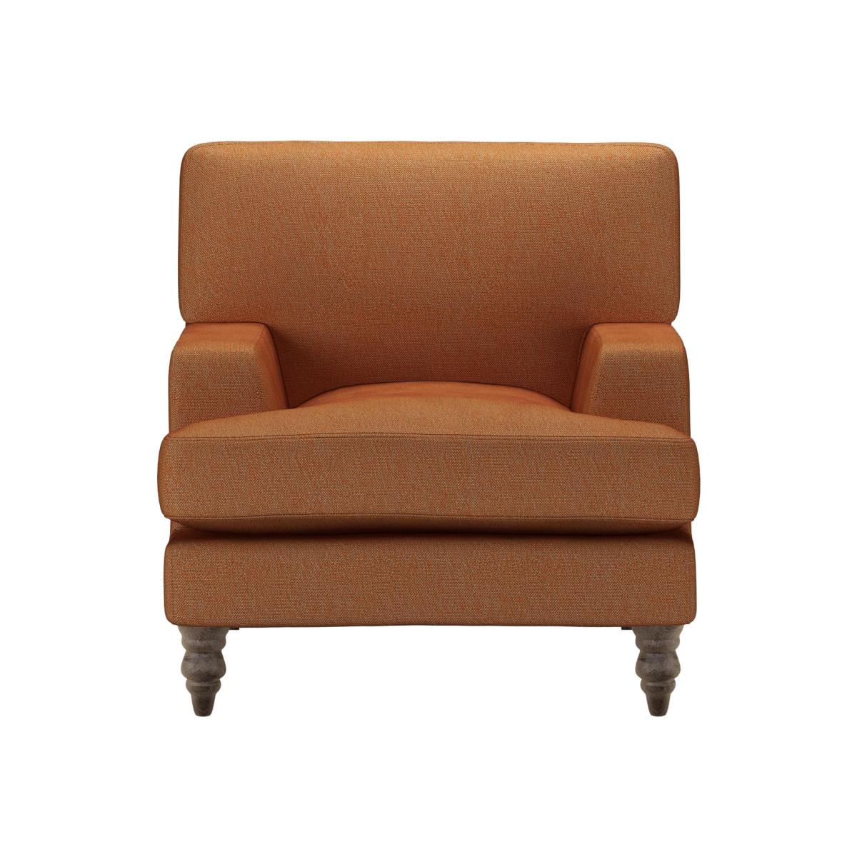I really like this armchair for its warm, inviting colour and the textured Saffron Heathland weave that adds subtle character without overpowering a space. It works particularly well in cosy, traditional interiors or modern schemes with a touch of vintage charm. When styling, consider pairing it with neutral or earthy tones to let its colour stand out, or add patterned cushions for a pop of personality. It’s a versatile piece that can sit comfortably as a statement solo seat or be integrated into a corner arrangement, making it a practical yet stylish addition to living rooms or reading nooks.
