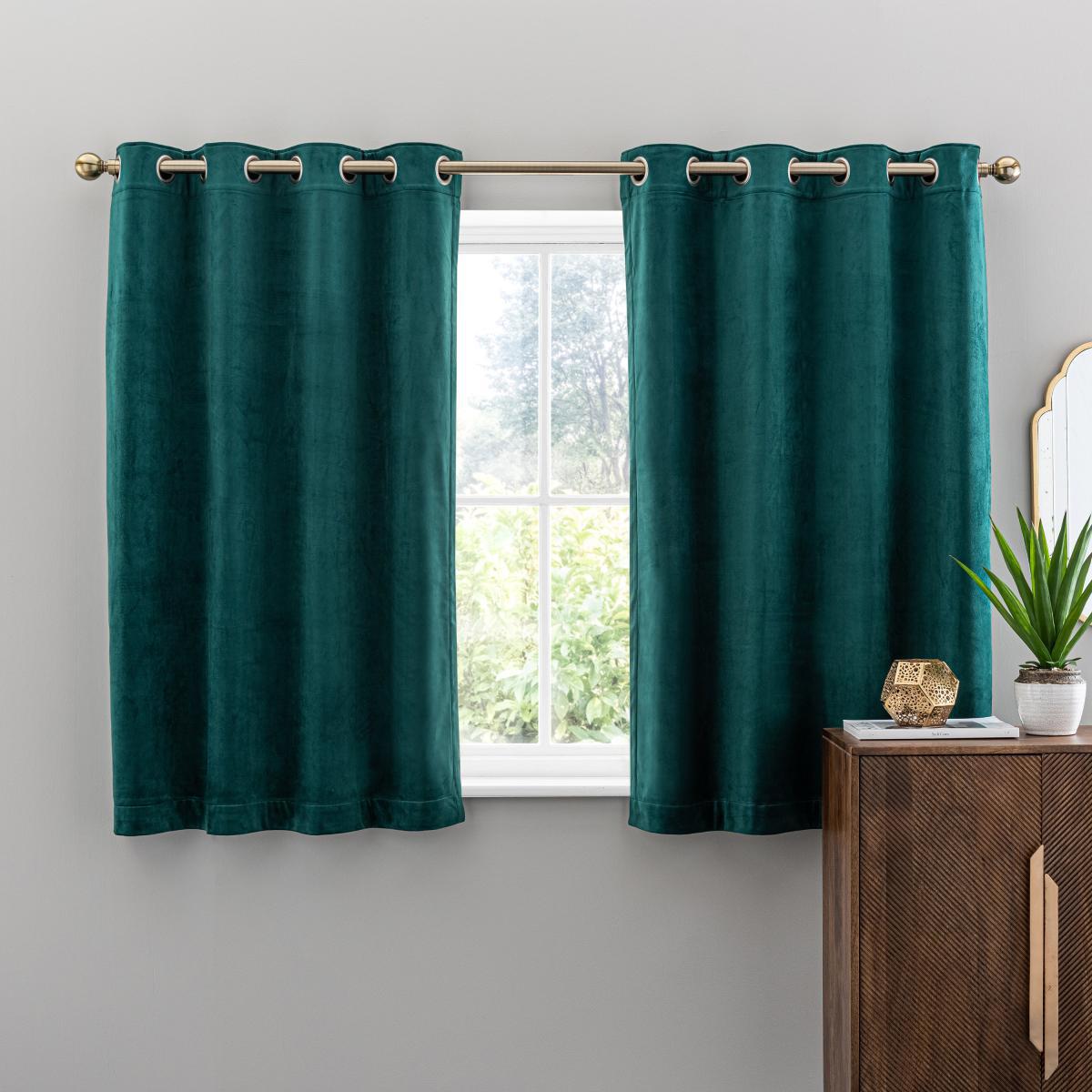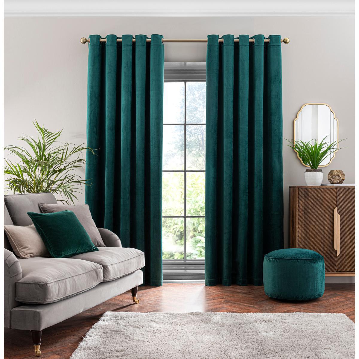 Crafted with three layers of blackout coating for premium performance, the elegant Isla Ultra Blackout curtains are ideal for ensuring maximum light block and feature a plain design to complement any room. These curtains are easy to hang and are designed with a discreet blackout-lined panel which folds down behind your curtain pole to prevent light coming through the eyelets. Fashioned with secure Velcro fastenings which attach to your curtain pole, these curtains wrap around your window to prevent light from entering at the sides of the curtain and are perfect for ensuring maximum light block. The blackout coating also features thermal properties, allowing these curtains to improve insulation by blocking out heat in summer and maintaining warmth in winter. Fashioned from a soft emerald velvet fabric for a sophisticated finish, these curtains bring a stylish edge to any room and are perfect for improving privacy and ensuring a great night’s sleep. Available in a selection of sizes to suit your requirements. Don't forget your. Curtain pole. For our hanging guide, please click. Here. Please note: these curtains are sold as a pair.