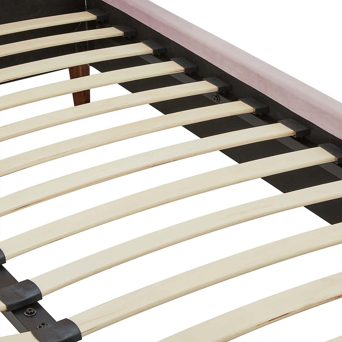 I love this blush velvet bed for its soft hue and luxurious texture, making it a versatile choice that can soften a minimalist space or add a touch of elegance to more traditional interiors. It works particularly well in feminine, boutique-style bedrooms or schemes with a Scandinavian influence, where its pastel tone can bring a gentle colour pop. Practical styling includes pairing it with crisp white or neutral bedding for a clean look, and adding plush cushions or throws in complementary shades like blush, cream, or deep greys for extra coziness. To keep the focus on its beauty, keep surrounding furniture sleek and understated - the bed itself becomes a statement piece in the room.