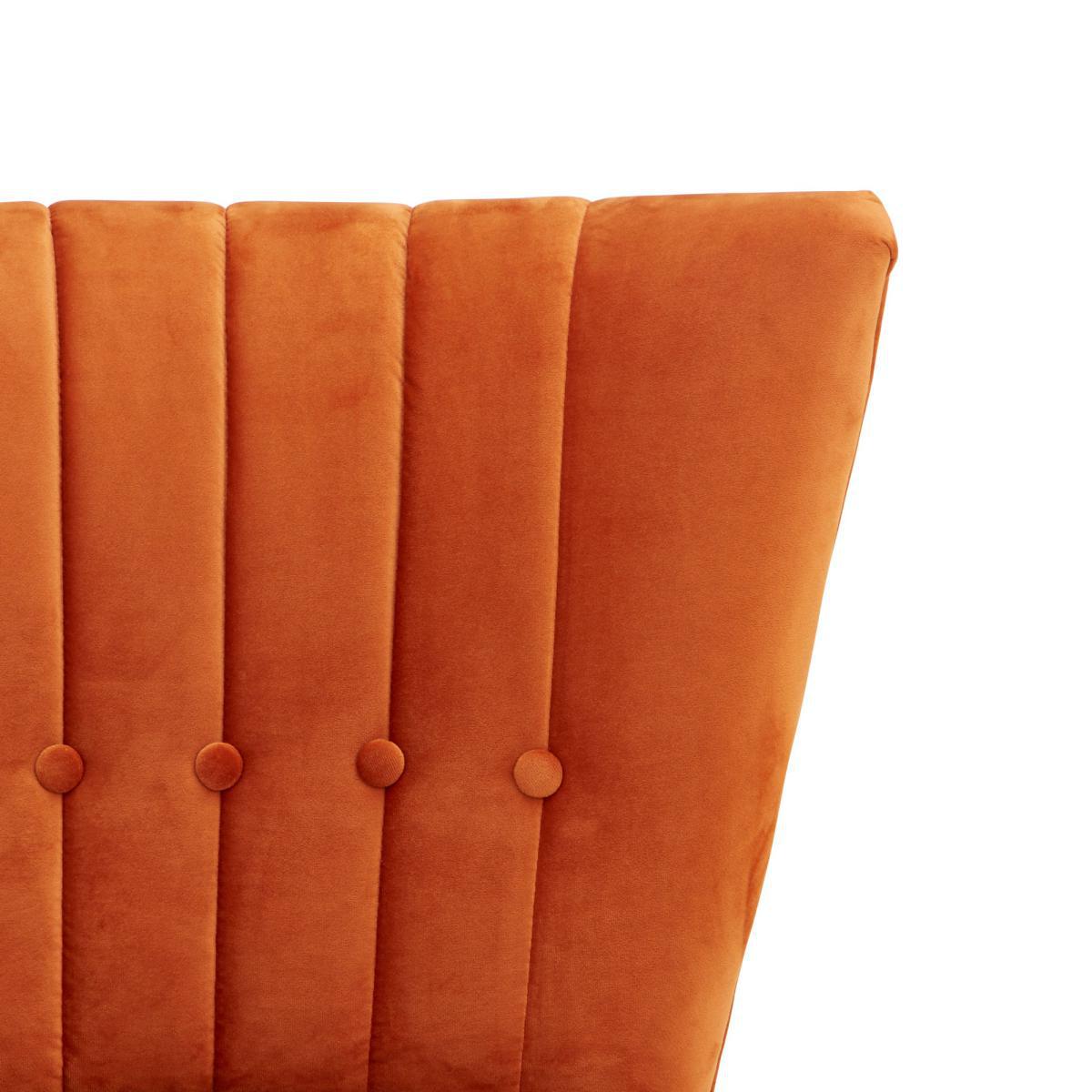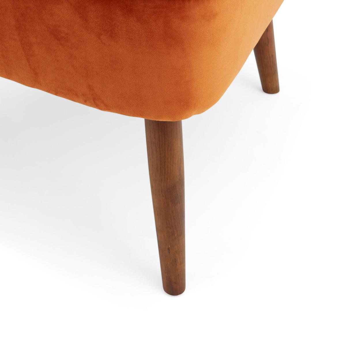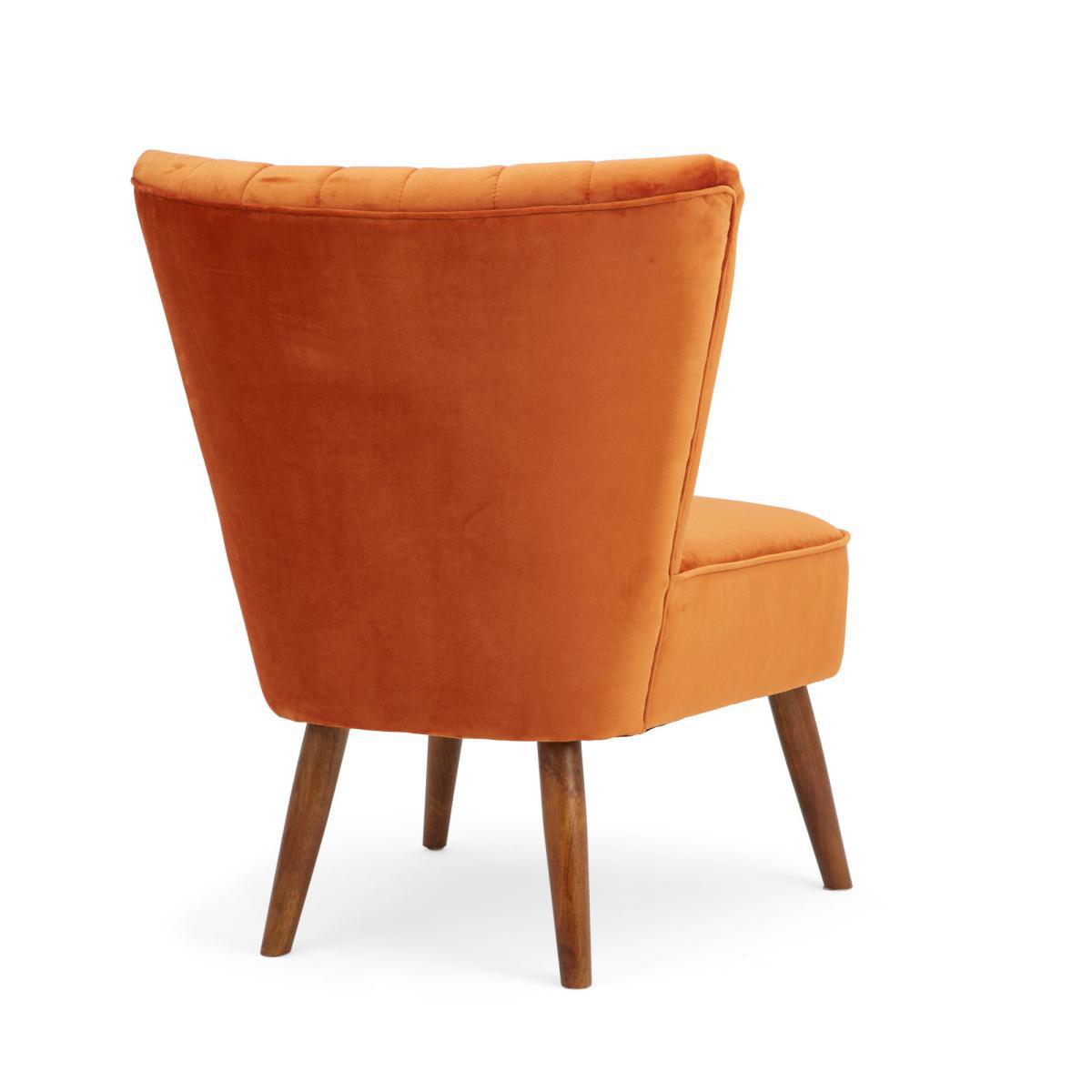 The orange velvet armchair is a great statement piece that adds colour and texture to a space. I love how its rich, vibrant hue instantly enlivens a room, making it ideal for contemporary or eclectic interiors. Its plush velvet finish also brings a touch of luxury, while the curved, slightly tapered legs keep the look modern yet understated. Practical styling tips include pairing it with neutral or contrasting coloured accessories to really make it pop or placing it alongside other bold patterns for an eclectic mix. It's versatile enough to work well in living rooms, bedrooms or even cosy reading corners, adding personality without overwhelming the space.