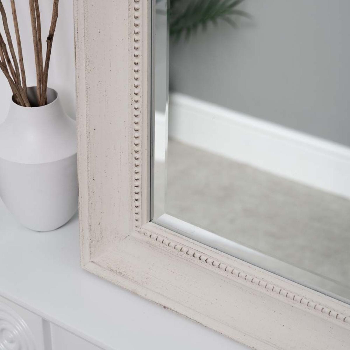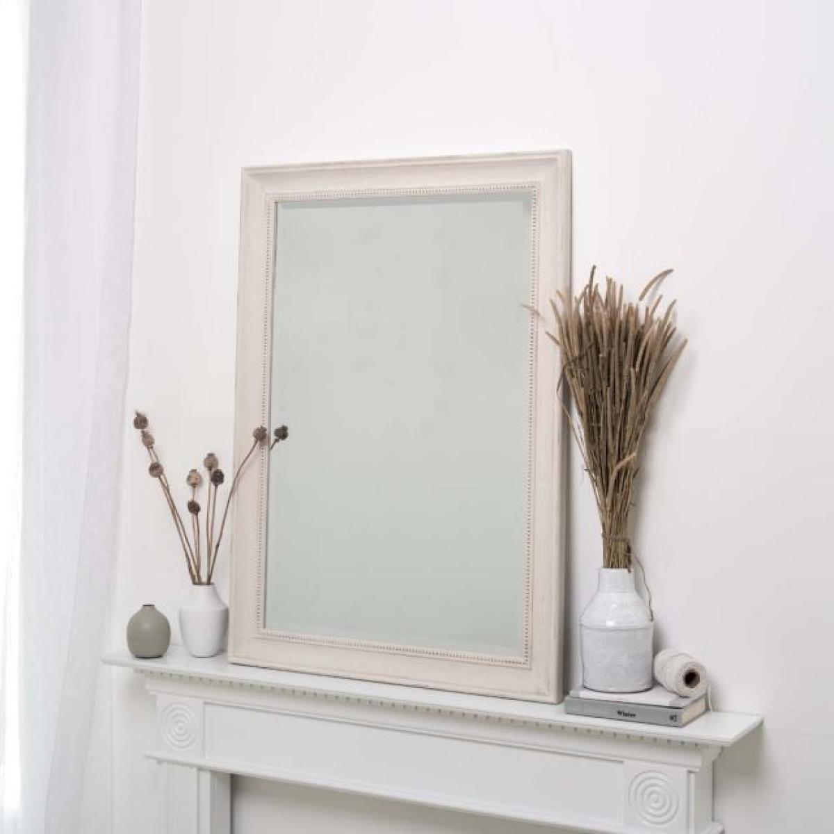 This Islington wall mirror is classic design with a deep and lightly distressed off white frame, with a bevelled edge looking glass. The mirror looks great as shown over a mantelpeice either hung or leaning, and its styling lends itself to any room in the home or indeed many different homestyles. Subtle Georgian style frame. Bevelled edges. Can be leant or hung. No assembly required. Dimensions: W75cm x H105cm x D3.5cm