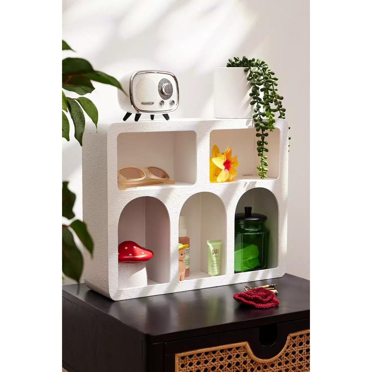 Create a standout display with this boho-modern storage shelf, featuring five assorted cubbies in a variety of shapes and sizes for giving plants, books, ceramics and trinkets their own special moment. Available exclusively at Urban Outfitters. **Content + Care** \- MDF **Size** \- 40cm x 10.5cm x 32cm