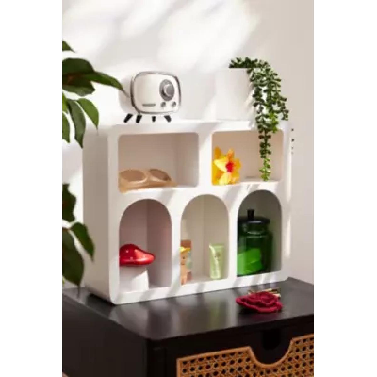 I’m a big fan of this white cubby shelf for its clean lines and soft arches - it brings a contemporary yet playful feel without dominating a room. Its compact dimensions make it ideal for home offices, hallways or as a bedside display, and the crisp white finish slots seamlessly into Scandi-inspired, minimalist or even eclectic interiors. For styling, treat each cubby as a mini vignette: mix a trailing plant with a small sculpture or stack a couple of pocket-sized books alongside a decorative candle. Stick to odd numbers of objects for a more relaxed look, and vary heights to keep the eye moving. Placing two or three units together creates a custom wall installation that’s both practical and effortlessly modern.