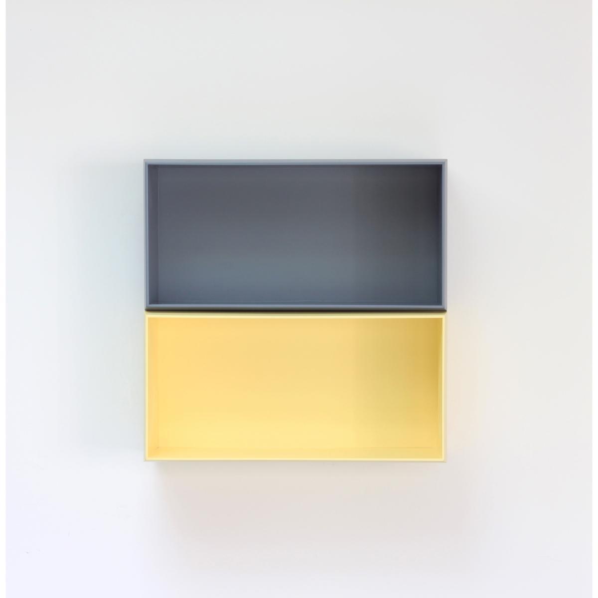 'Not everything is perceptible at first glance; it's up to us to discover for ourselves. '' French designers Jean-François Bellemère and Olivier Chabaud The Isou shelving collection consists of coloured compartments that serve as a frame for displaying your favourite objects and books. Available in a variety of shapes and a superb palette of current shades, the compartments can be arranged in various ways to create a graphic composition. The simplicity of the design offers pure elegance and sophistication that’s accessible to all. At first glance, the design of the Isou shelves seems simple and uncluttered. But by looking more carefully, we can see the fine details: bevelled angles reveal shadows that bring multiple shades to the colour. The subtlety of design is due to this progressive ''entry into a land of knowledge''. This plan does not appear immediately, but is revealed through the light of observation. Isou shelves spread their joy everywhere in the house: kitchen, living room, bedroom or bathroom. They perform several functions: open storage, bedside table or even small console in an entrance. This set consists of two rectangular compartments.
