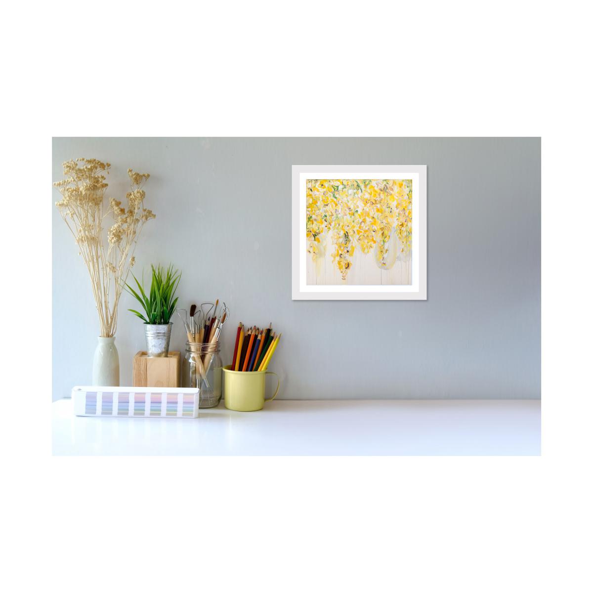 I love this bright yellow print because it adds instant energy and warmth to a space, making it perfect for living rooms or kitchens that could do with a splash of sunshine. It works well in both modern and eclectic interiors, especially when paired with neutral tones or natural materials like wood or linen to let the colour pop. For styling, consider pairing it with understated accessories to keep the focus on the artwork, or go bolder with coordinating yellows and gold accents for a cohesive look. It's also a great piece for layering in a gallery wall, as its vibrant hue can anchor other artworks and decorative objects in the room.