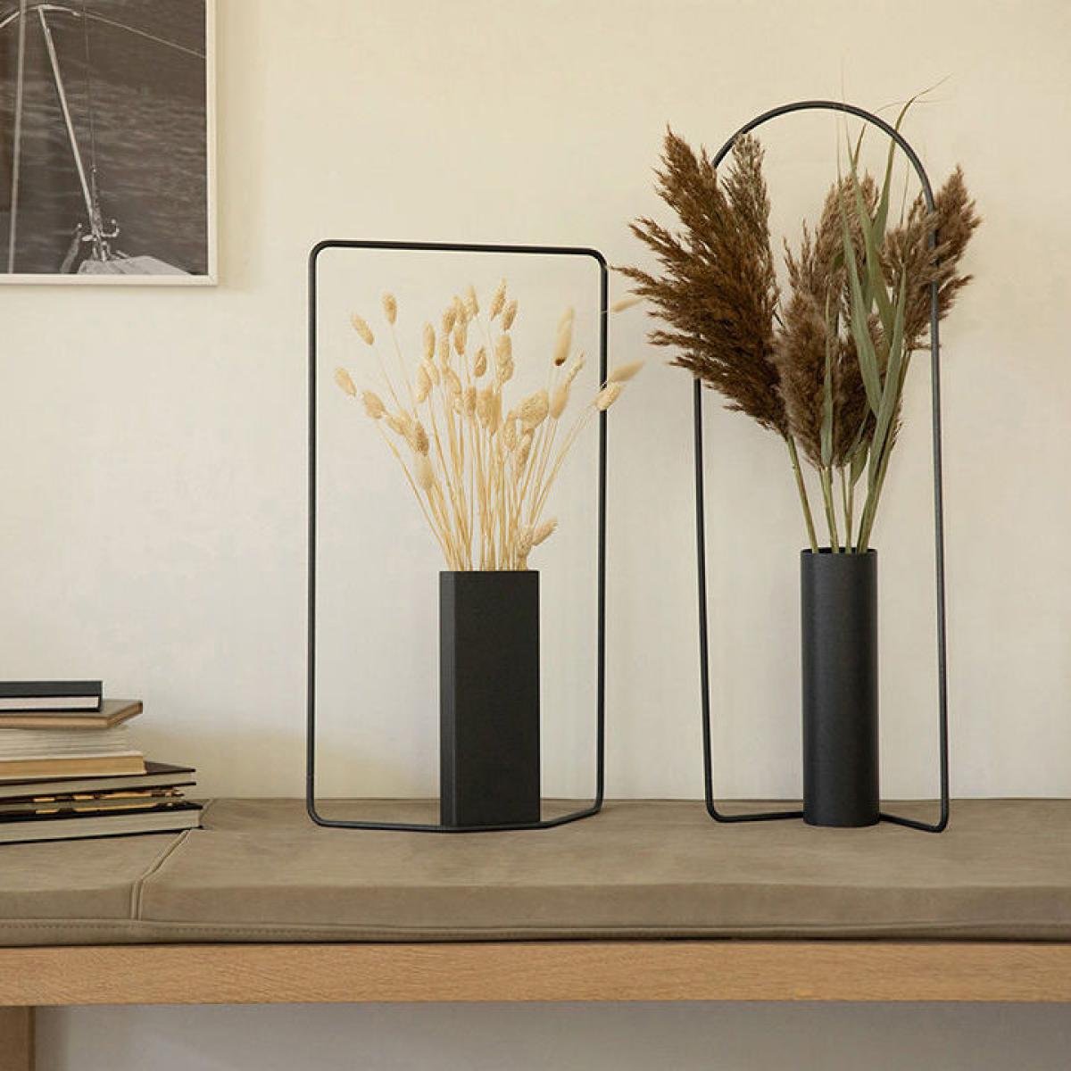 A true ode to nature, the ITAC collection by Fermob presents two majestic vases which have been designed to amplify flowers and foliage. Drawing inspiration from the Cyclades archipelago, the ITAC collection, named after the island Ulysses was born on, showcases sleek and geometric lines. The result? More than simple vases, they're decorative pieces that invite nature into the home in elegant style! The rectangular vase (H 62 cm) wonderfully demonstrates Fermob's expertise. Its intelligent design makes it a smart and versatile piece, which can flit from use-to-use with ease. Lightweight and easy to move about, they can be positioned here and there, on the ground, on furniture or even mounted on a wall: it's up to you to pick the perfect spot for it! This metal vase boasts an unrivalled lightness to its aesthetic. Its steel wire structure plays on transparency. Made in France, with all the finesse that can be expected of pieces coming out of the historic Thoissey production site. The highlight is put on the rectangular steel tube, in which a watertight and removable black polyethylene container is concealed, ready to hold bouquets of fresh or dried flowers. Coming in exclusive tones, the Fermob vase foes with all sorts of floral compositions. Because nature has something for every taste… A bit of décor advice? We love styling the design vase from the ITAC collection with single pampas leaves. For aesthetic and elegant plant-based décor. There's some gift inspo that is sure to delight!