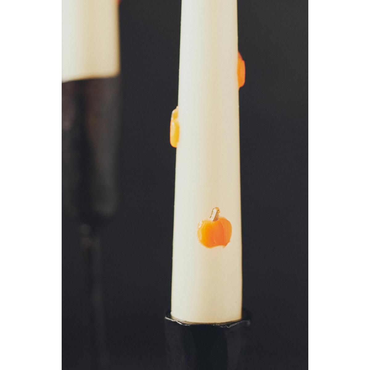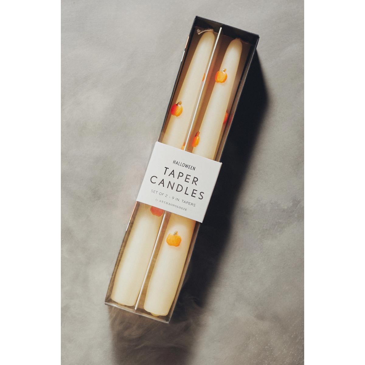 Embrace autumnal charm with the Italian Pressed Bead Pumpkin Icon Taper Candles, a delightful set of two tapers, perfect for adding a festive touch to your seasonal décor. Italian Pressed Bead Pumpkin Icon Taper Candles, Set of 2 by Anthropologie in White