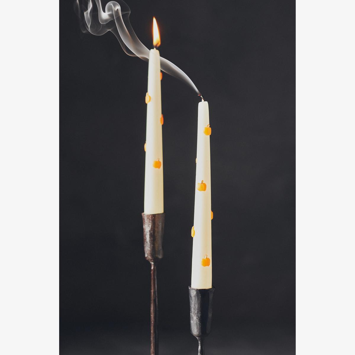 Italian Pressed Bead Pumpkin Icon Taper Candles, Set of 2