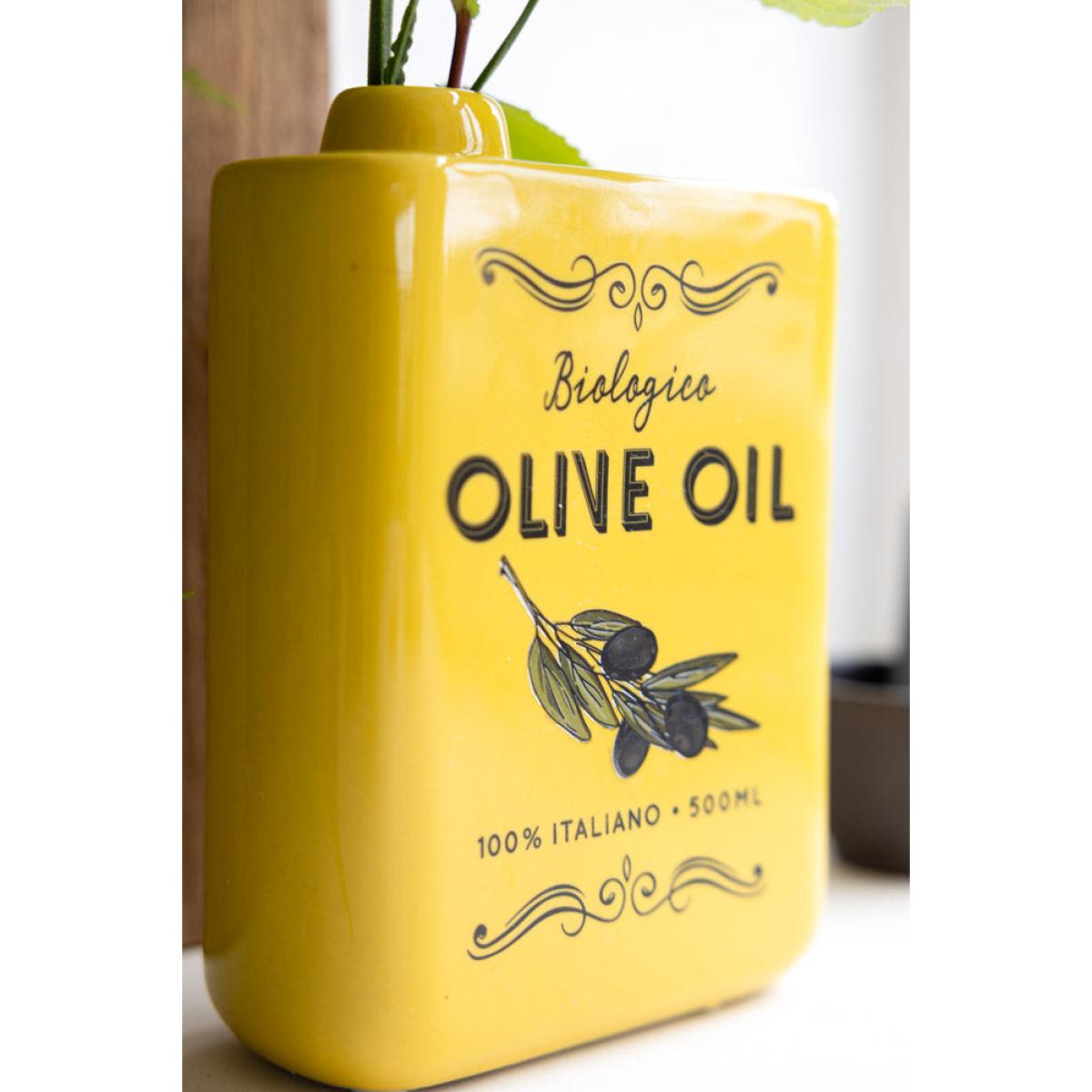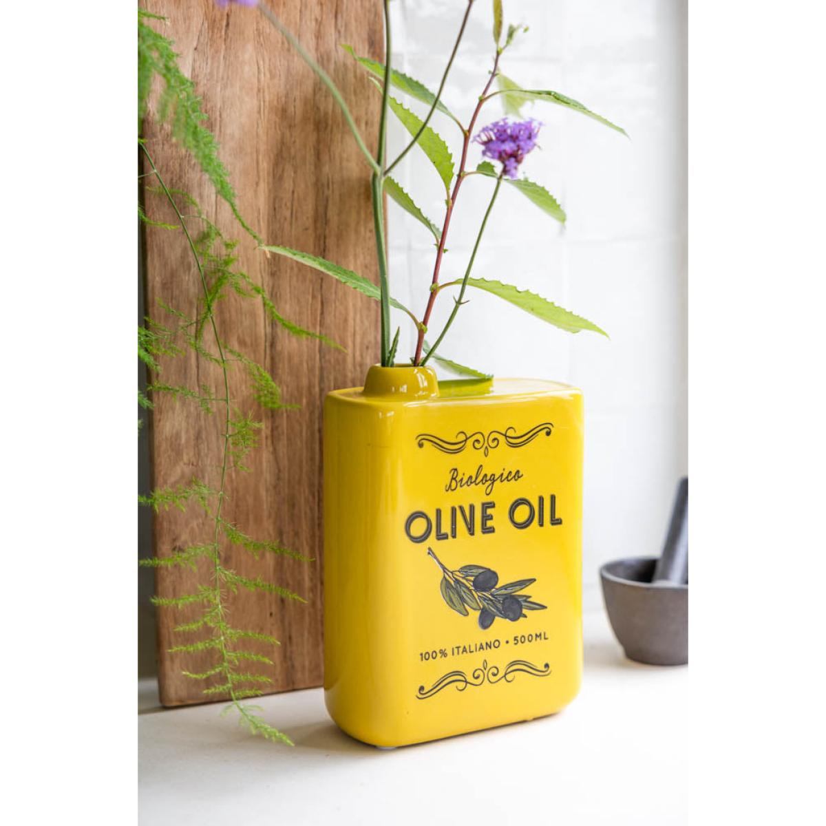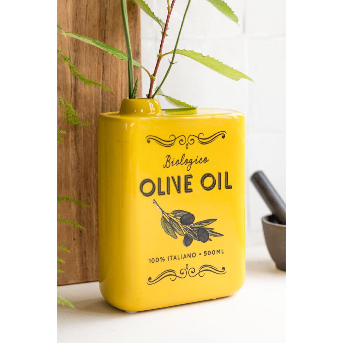 This beautiful yellow ceramic vase brings traditional rustic Italian vibes to your casa via what’s possibly the most Mediterranean of all delicacies - olive oil. We love the design of this vase, and the typography, which mimics a traditional olive oil can beautifully. It’s a quirky piece that adds warmth and a sense of wanderlust to your home – after all, who wouldn’t want to be off on a madcap Italian adventure, on a mission to source the most delicate of oils with which to elevate everyday greenery to deliciously fresh new heights? Style with one or two fresh blooms in white, pink, green or red to contrast with the earthy yellow and let this vase do all the talking. Endlessly joyful. - Italiana Yellow Olive Oil Vase - Material: Earthenware - Measures: H17cm x W13cm x D5.5cm