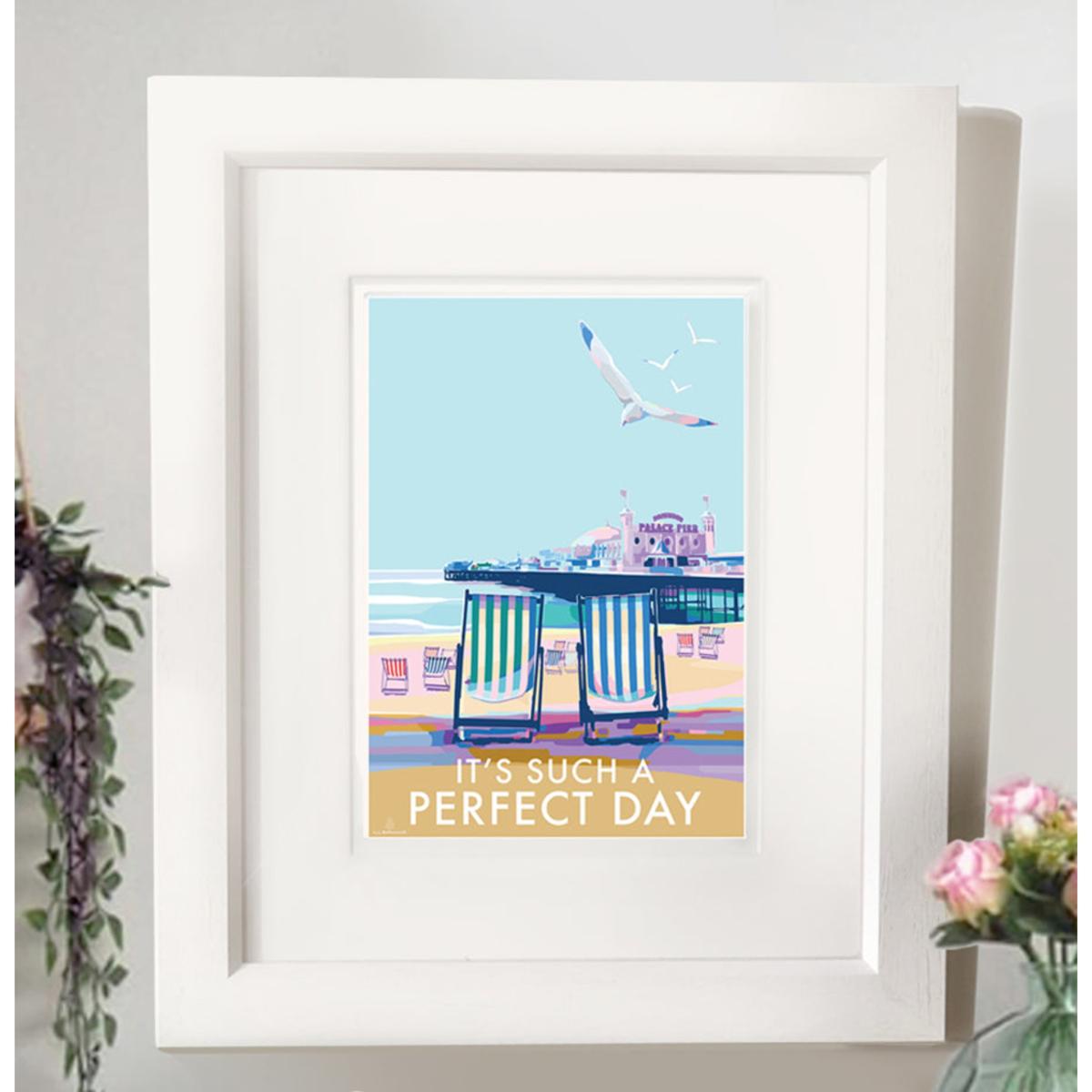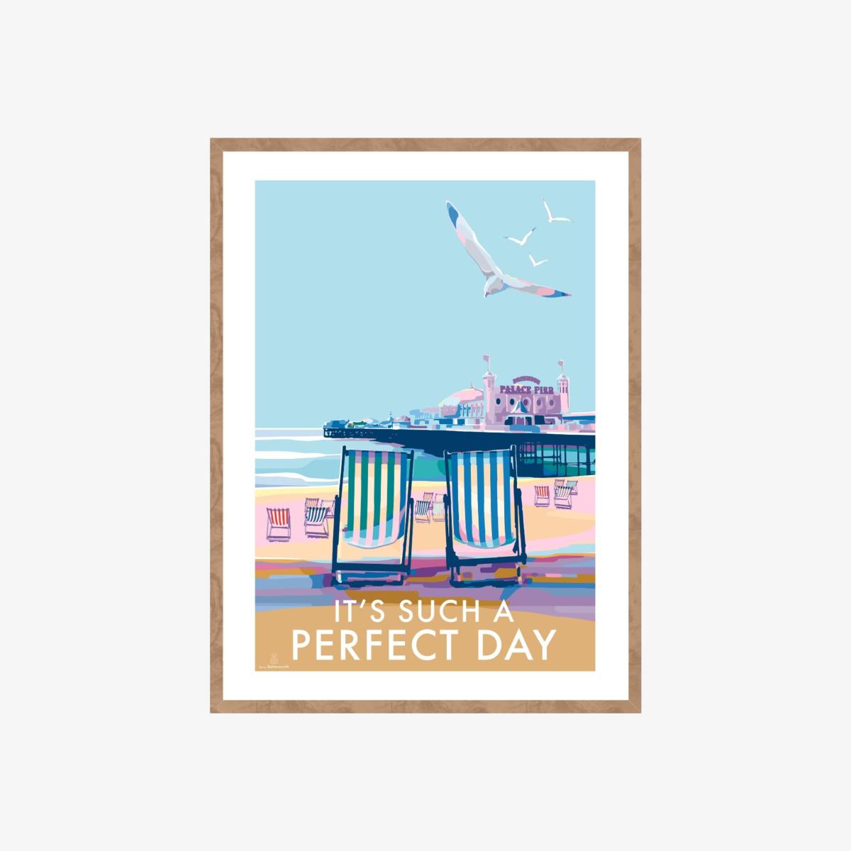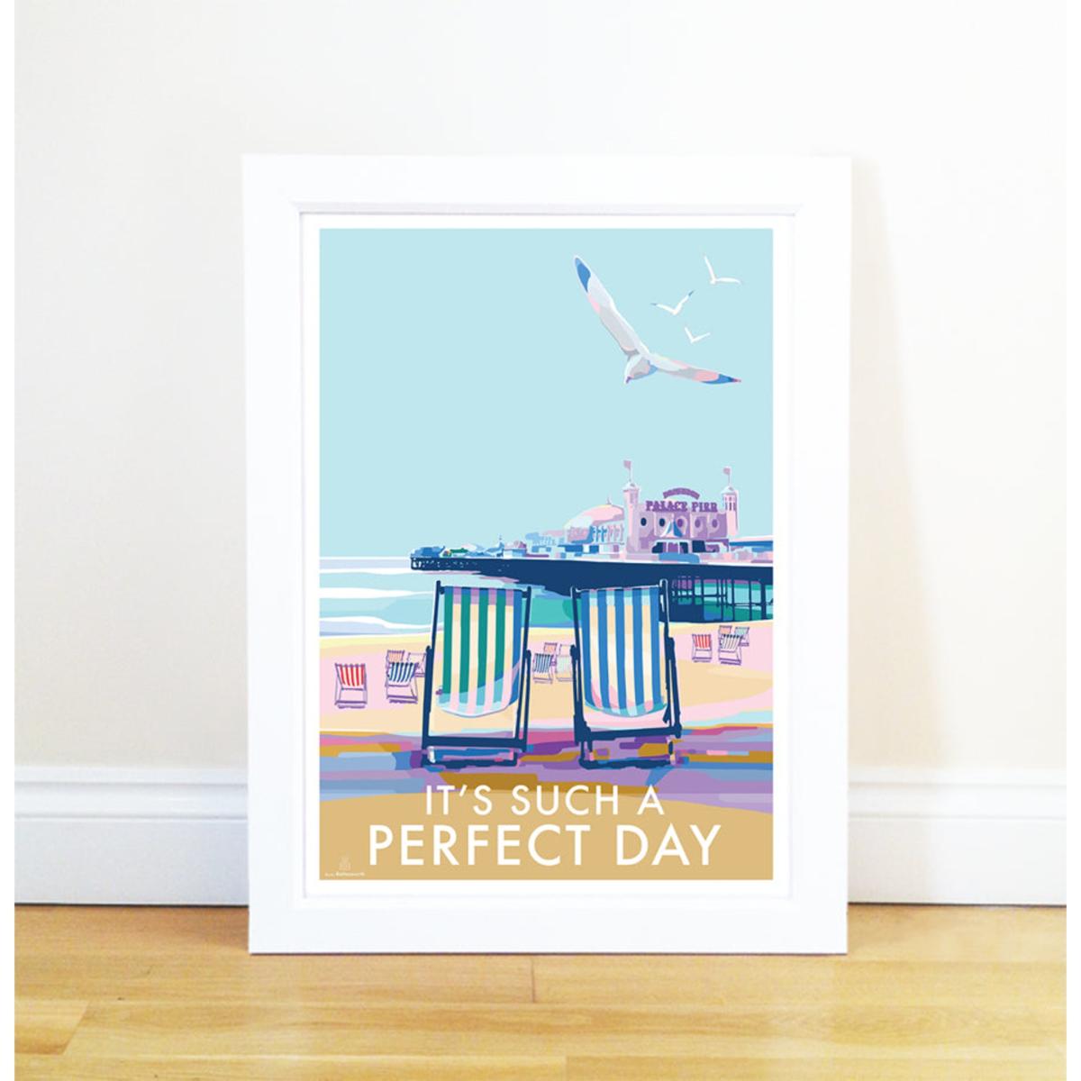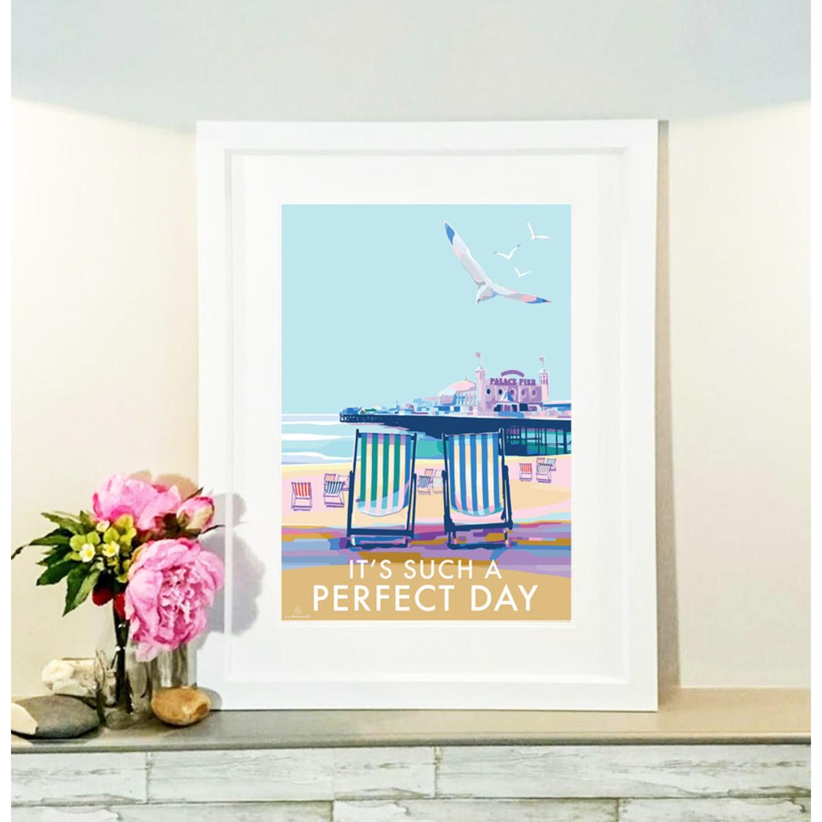 It's Such a Perfect Day vintage style retro quote poster created by award-winning Devon artist, Becky Bettesworth. Becky wanted to combine her love of the vintage nostalgic seaside with something fun and memorable for that Perfect Day sitting watching the world go by on the beach. Her inspiration has come from family trips to the beach and her love of all things seaside that inspire her on a daily basis. It's Such a Perfect Day is for all those of you who love the seaside and long to be sat in those deck chairs with the sun of your face listening to the sound of the sea and people having fun.