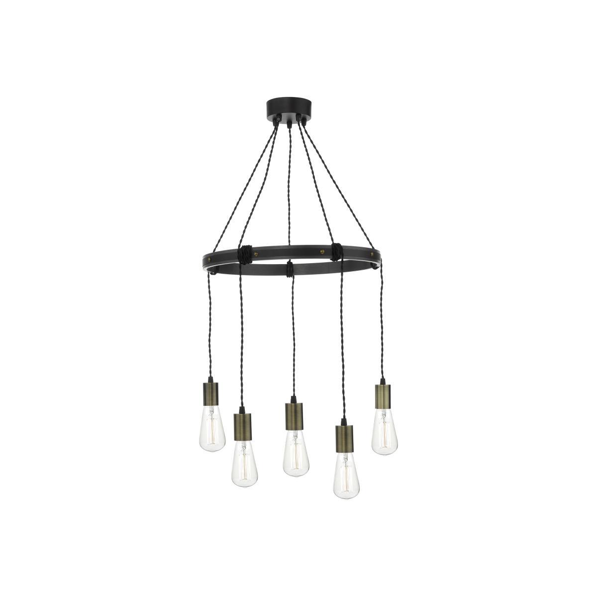 Make an industrial-chic statement with this Ivan pendant light, featuring five bulbs suspended from a wood and metal ring. Vary the height of each to suit your mood. Why you’ll love it. Statement industrial pendant light. Wrap the lamps around the frame to vary the height. Suits a modern or rustic setting. Quality materials used throughout. Crafted with care for Furniture Village. What you need to know. Wooden and metal ring, with vintage cables. Suits vintage Globe and Rustica filament lamps. 5 x 60W max LED bulbs recommended. Dimensions. Height:50-150 cm (20- 59in). Diameter: 47cm (19in).