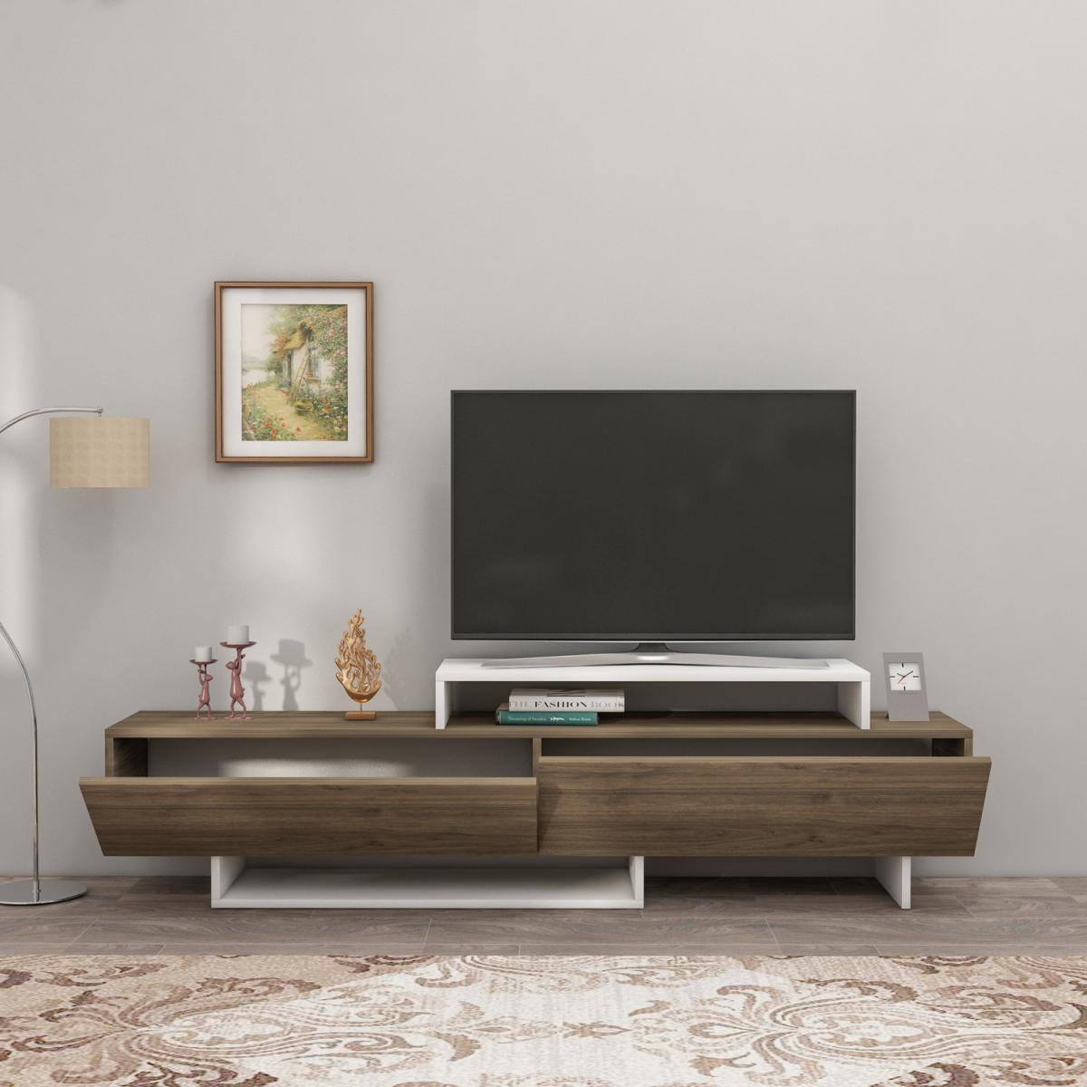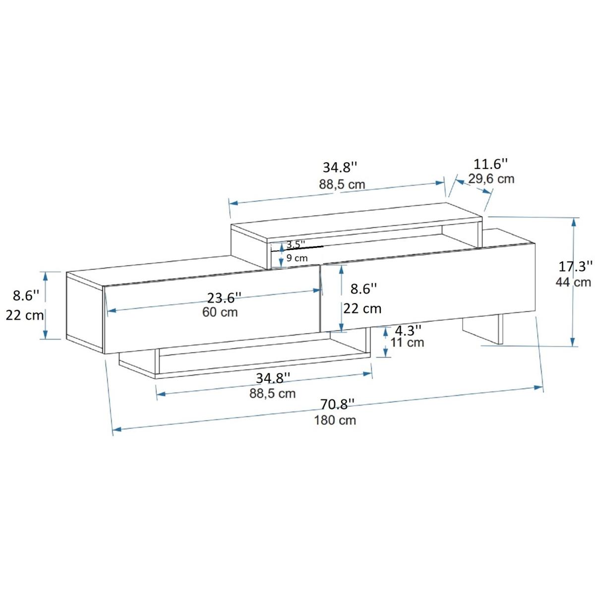 Ivano TV Stand has a white and stylish look, which will perfectly suit the living room. There are also cabinets for storing DVDs, CDs, and other media. MATERIAL The TV stand is made of an 18 mm thick quality melamine-coated particleboard. The manufactured wood surface is water-resistant to some extent and the edges are banded with PVC edge banding tape. First-class assemblyinstallation hardware and accessories are used. Our products are produced from certified quality raw materials that do not contain carcinogenic substances and comply with European Union health norms. CLEANING You can clean your furniture with a dry cloth. Avoid prolonged contact of your product with moisture and water. ASSEMBLY The product will be delivered to the customer in the original package as disassembled. It is designed to be assembled by the customer using a power drill and screwdriver. Assembly instruction and installation hardware are included in the package. For fast and error-free installation, product parts are numbered with stickers in accordance with the assembly guide.