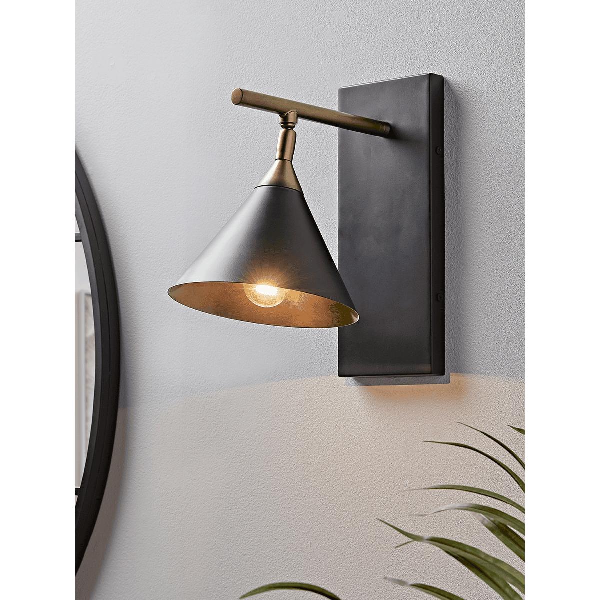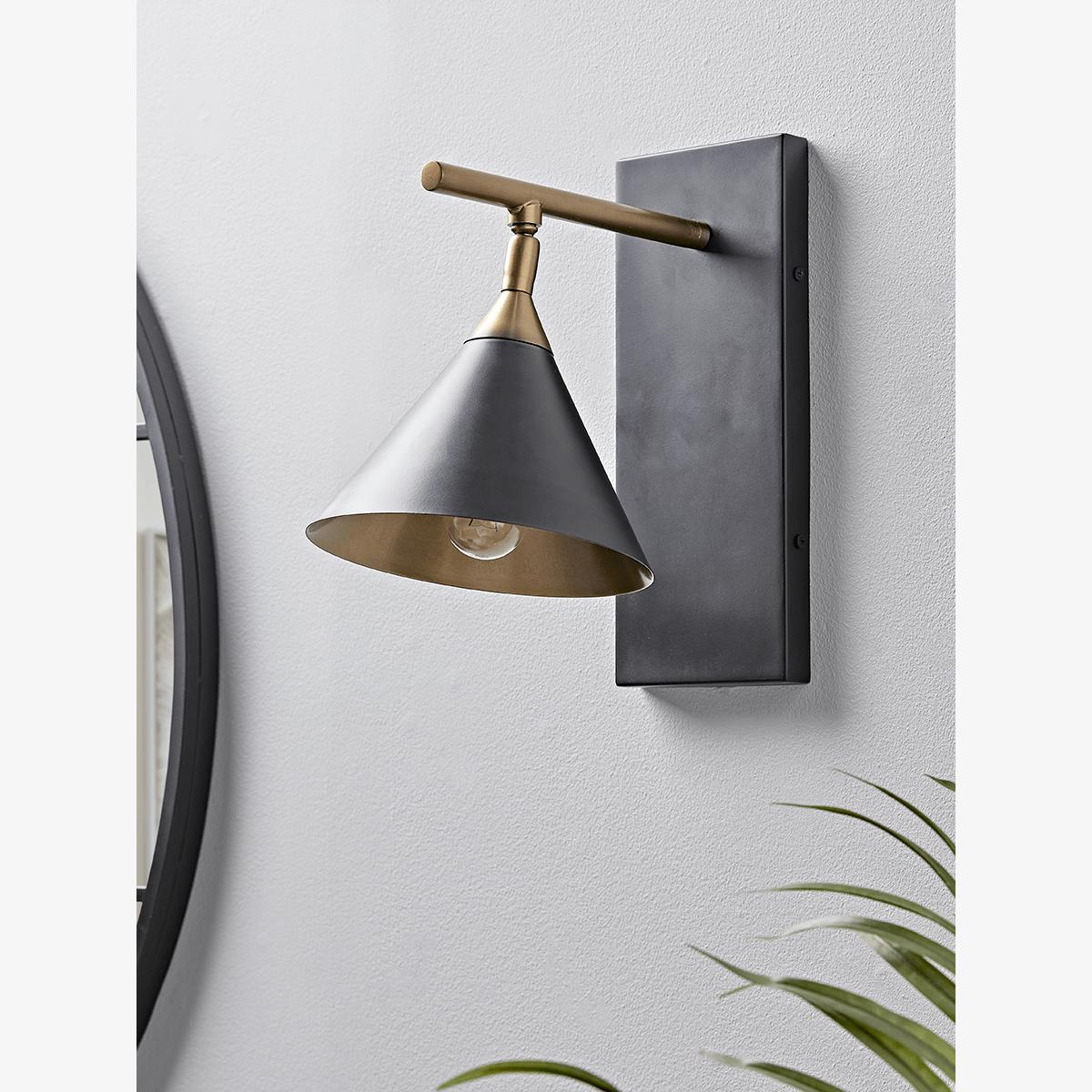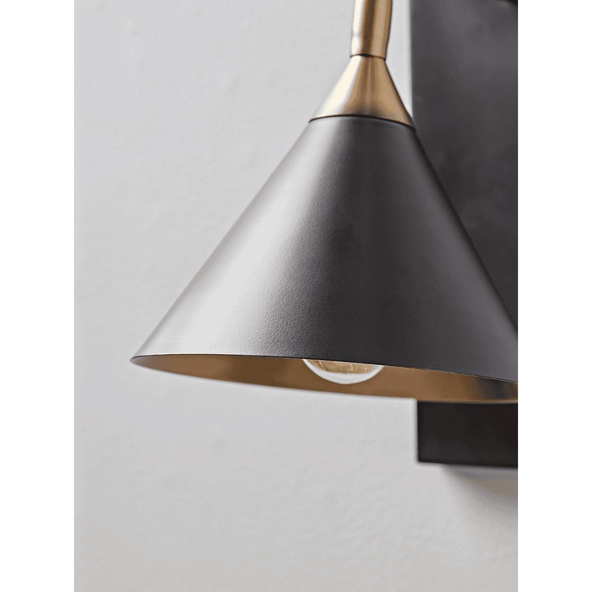 I love this wall light for its contemporary yet versatile design, which can effortlessly complement a range of interiors-from modern minimalist spaces to more eclectic schemes. Its matte black finish paired with the metallic cone and brass rod introduces a nice mix of textures, making it an excellent choice for adding subtle visual interest without overwhelming the space. It works especially well in areas such as living rooms, bedrooms, or hallways where layered lighting is key. For styling tips, place it at eye level next to artwork or mirrors to enhance visual appeal, or pair multiple units along a wall for a coordinated look. Its understated design makes it flexible enough to serve as either a statement feature or a complementary accent piece.