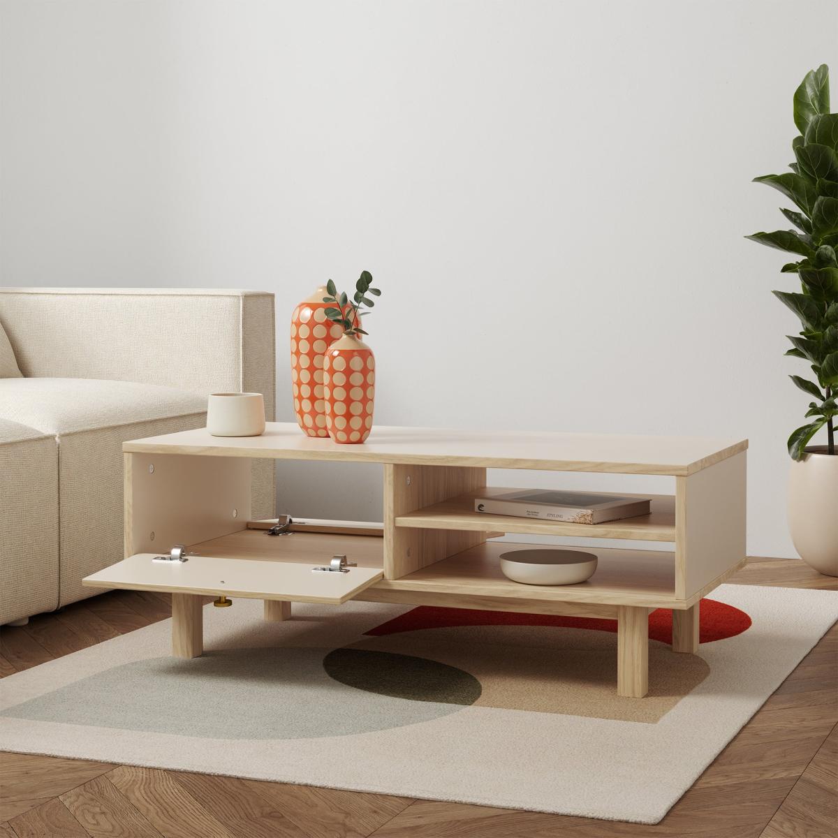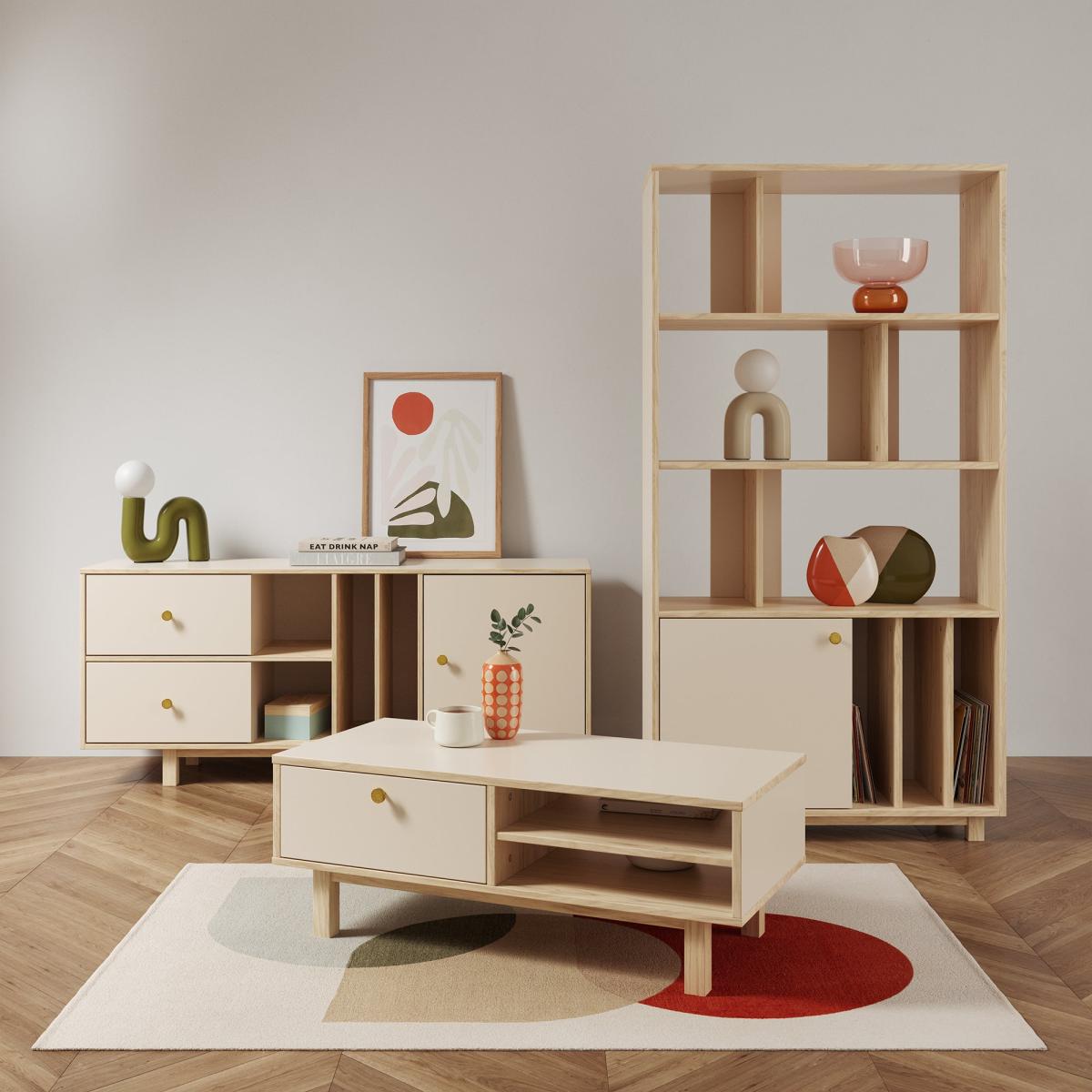 I like the Iver coffee table for its clean, neutral look, which makes it versatile across various interior styles, from Scandi to contemporary. Its cream tone adds warmth without overpowering the space, making it suitable for both small and larger living rooms. Styling tips include keeping surfaces clutter-free and adding a few decorative trays or bowls for organisation. It works well with light, natural textures like rattan or linen, and can be layered with books, candles, or low greenery for a relaxed, inviting feel. The open shelving also provides practical storage, perfect for displaying favourite items or keeping everyday essentials close at hand.