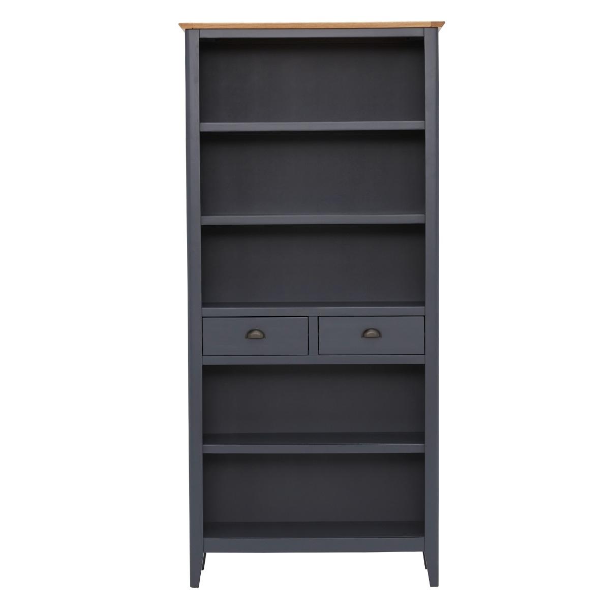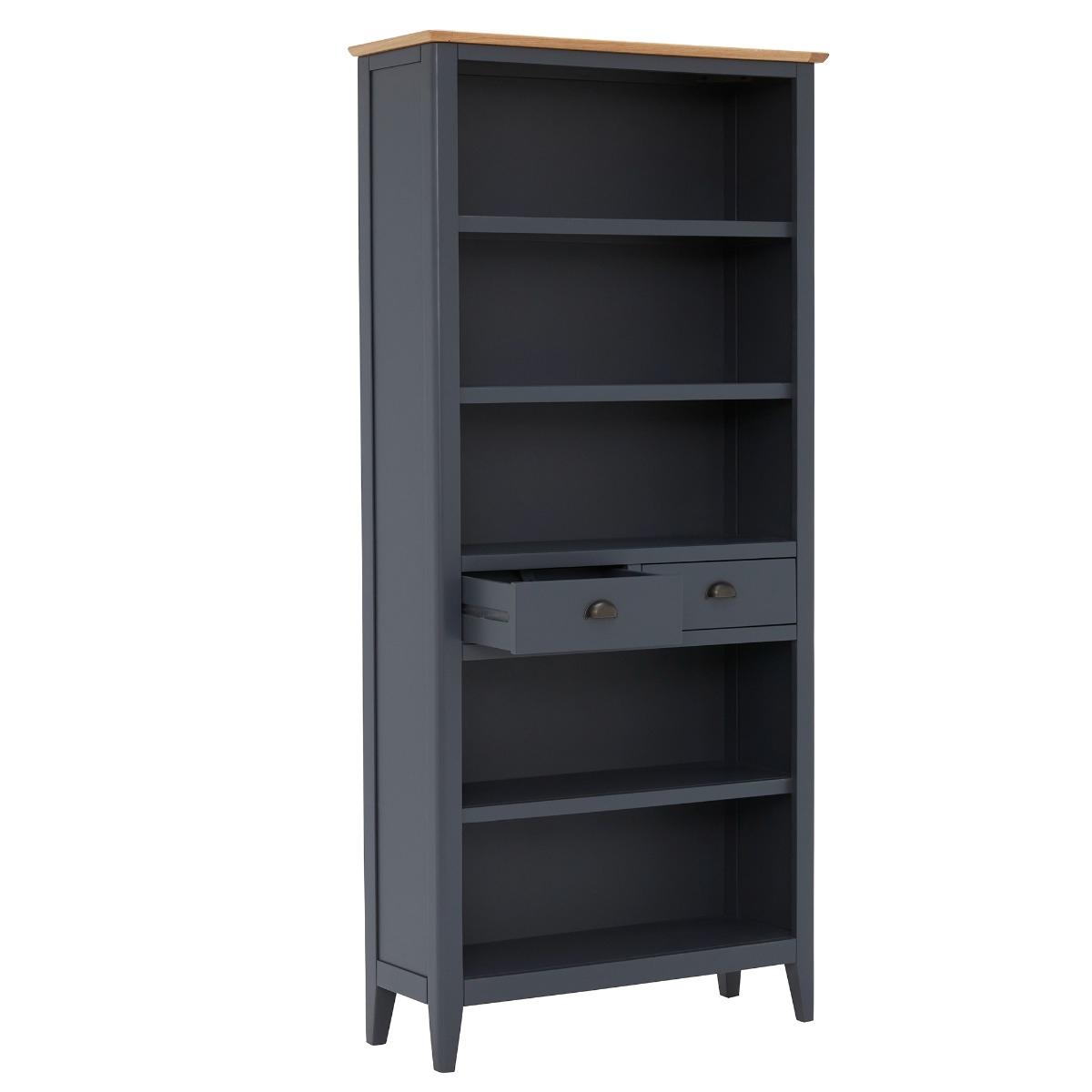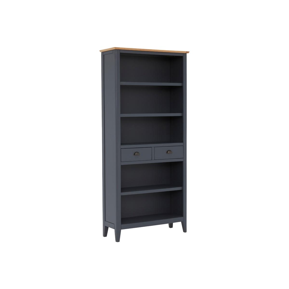 Design. With a slightly moody feel thanks to the rich colouring of the ink blue shell, the Ives 2 Drawer Tall Bookcase will create quite the statement in your living area or study. If curling up with a good book is your passion, it is important they are stored away neatly and displayed with pride, as well as any ornaments, trinkets, and plants to add character to the room. The Ives Tall Bookcase, complete with two handy drawers for further subtle storage, is sure to be a practical and stylish furniture piece to add to your home.